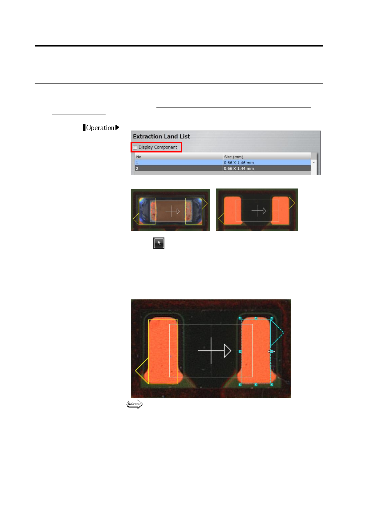 2.4 Registeri ng f or Insp ection 2- 59 2.4.5.2 Land Se tting Land windows are autom atically extracted and d isplayed on the sc reen, if they are not s pecified for the com ponent yet, based on the bare PCB im age. The …
