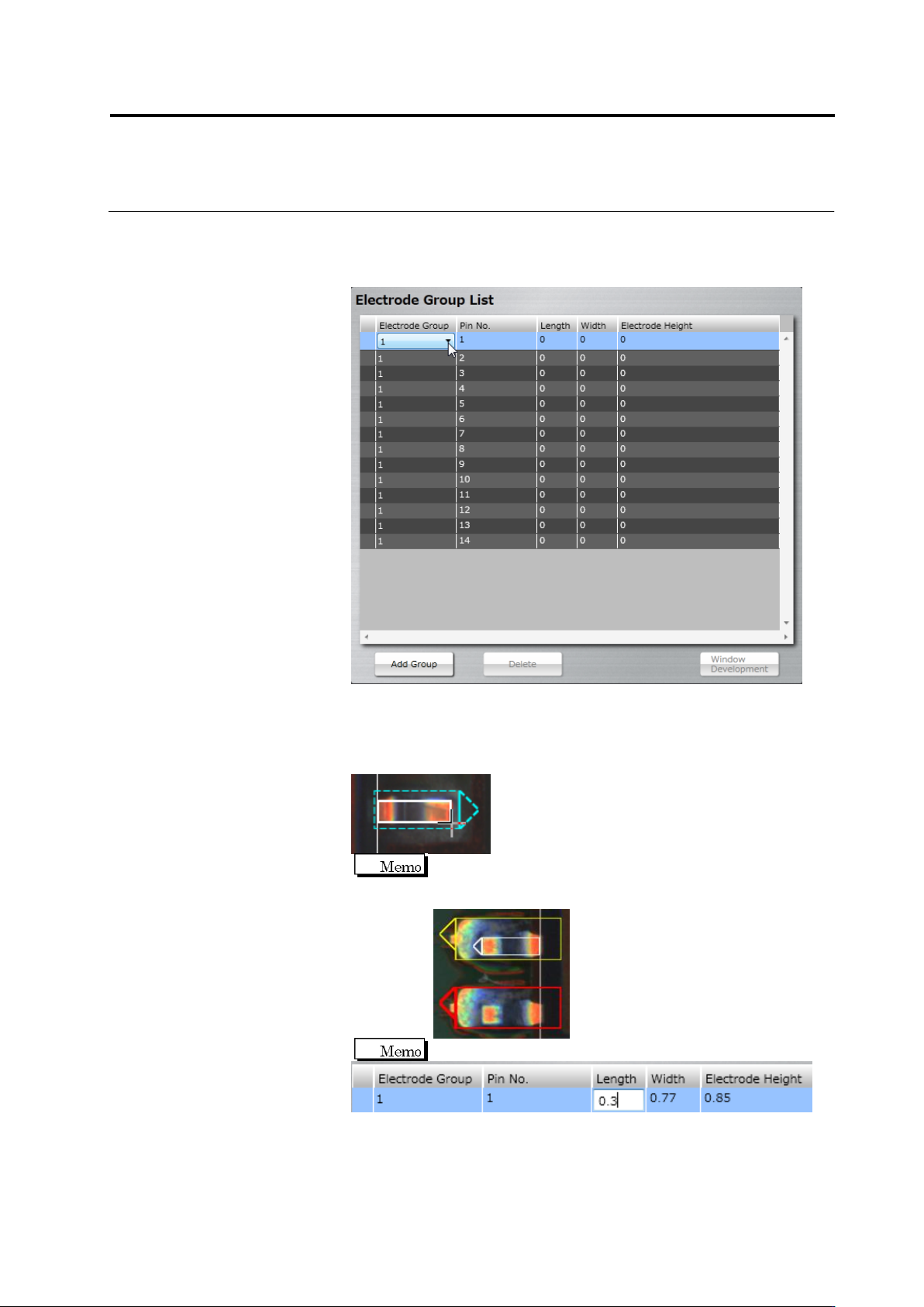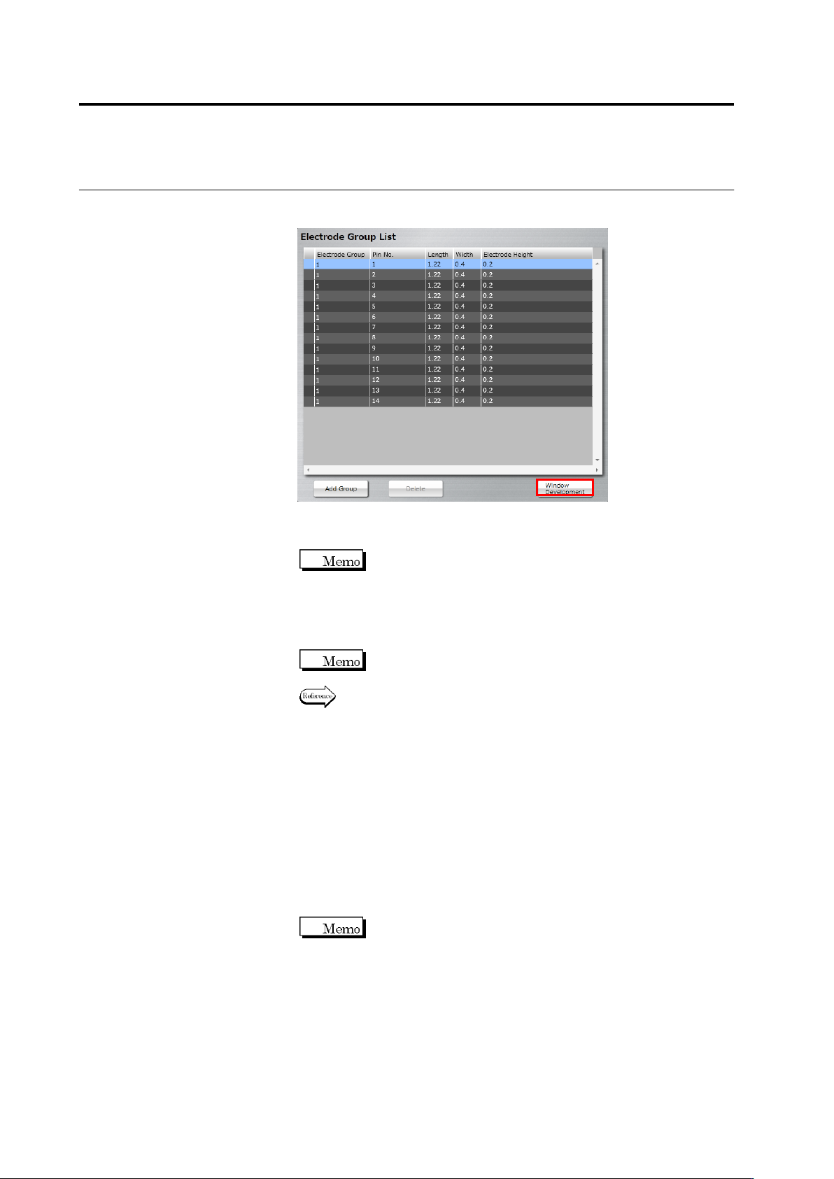 2.4 Registeri ng f or Insp ection 2- 69 To change the group set ting, double- click the Electrode Gr oup cell in the Electrode Group L ist to select the group. If the number of groups is not suff icient, click [Add Group…