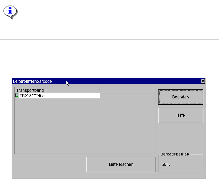 Abb. 3.3 - 13 Dialog „LP- Barcode“ (Beispiel: nur 1 Transportband)