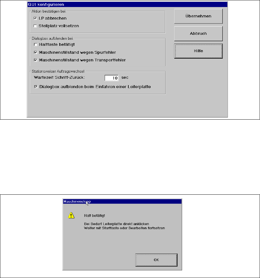 werden müssen oder ob bei Auftreten von bestimmten Ereignissen eine Dialogbox mit den ent-