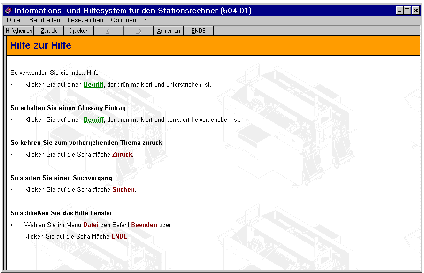 Das Hauptfenster des Hilfesystems für den Stationsrechner wird geöffnet (siehe Abb. 6.1 - 2).