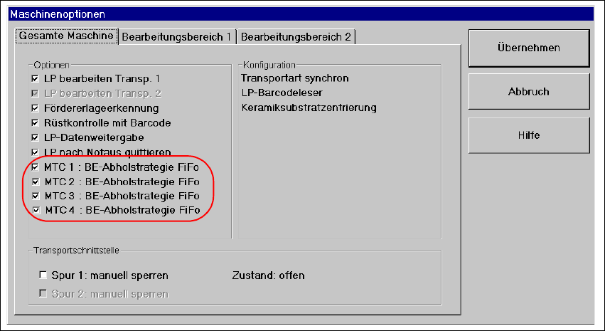 Die Einstellung der Maschinenoption galt für alle an der Maschine gestellten MTC’s. 8