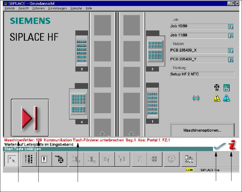 Tritt während der Arbeit ein Fehler auf, wird die entsprechende Fehlermeldung im Statusfeld der