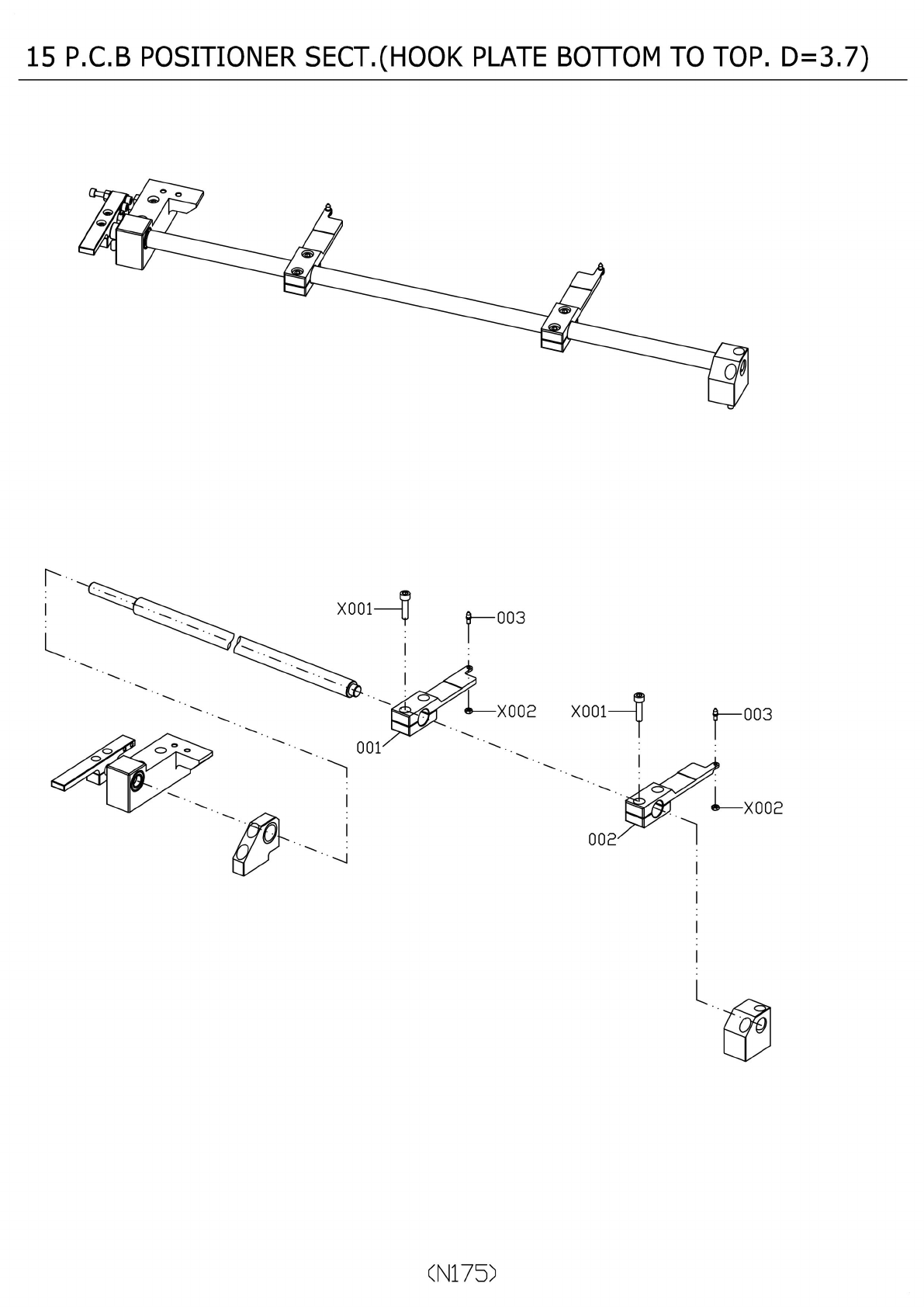 15 P.C.B POSITIONER SECT.(HOOK PLATE BOTTOM TO TOP. D=3.6)
