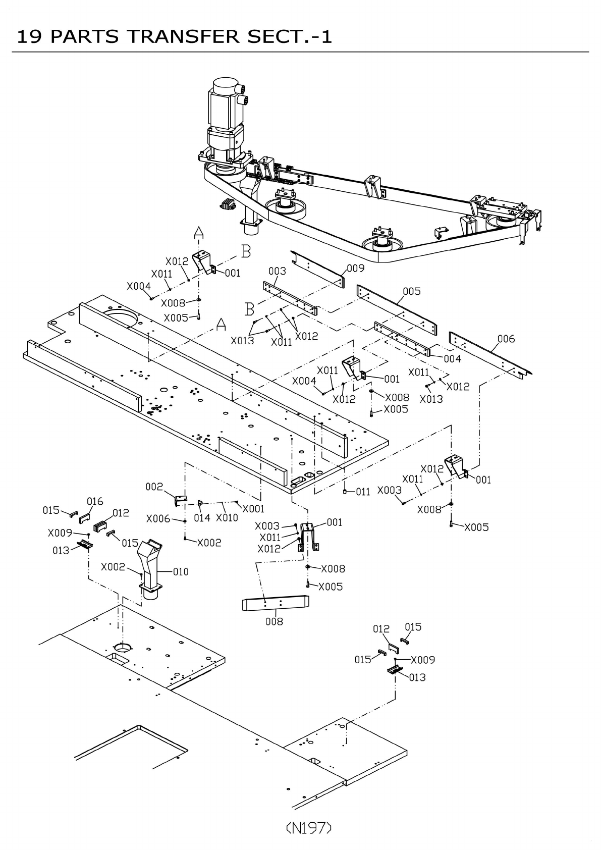 19 PARTS TRANSFER SECT.-l A । 009 003 001 005 006 004 o X013 002 016 015 012 X006 1 必 X009 015 013 「一 X002 010 008 015 X009 o 013 J • o X003 X011 X012 ZX008 匕 X005 K008 i<005 J 001 J X012 X008H X005」 X011 X004 Jx002 0…