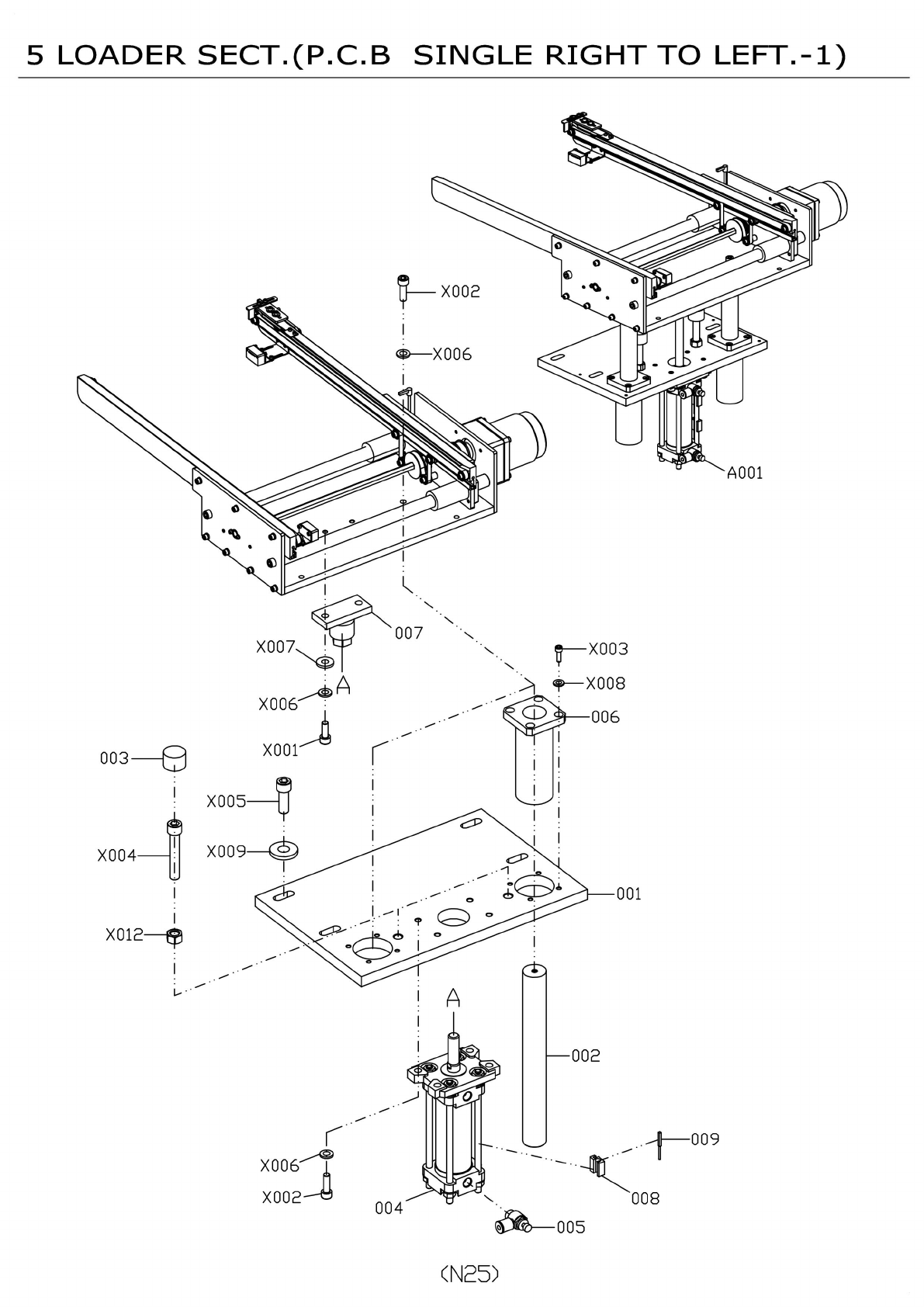 5 LOADER SECT.(P.C.B SINGLE RIGHT TO LEFT.-l) X002 — X006 A001 007 X007 006 X001 003 X005 X009 X004 001 X012 A — 002 009 X006- X002 008 004 — X003 — X008 A X006)^ ..分 CD (N25)