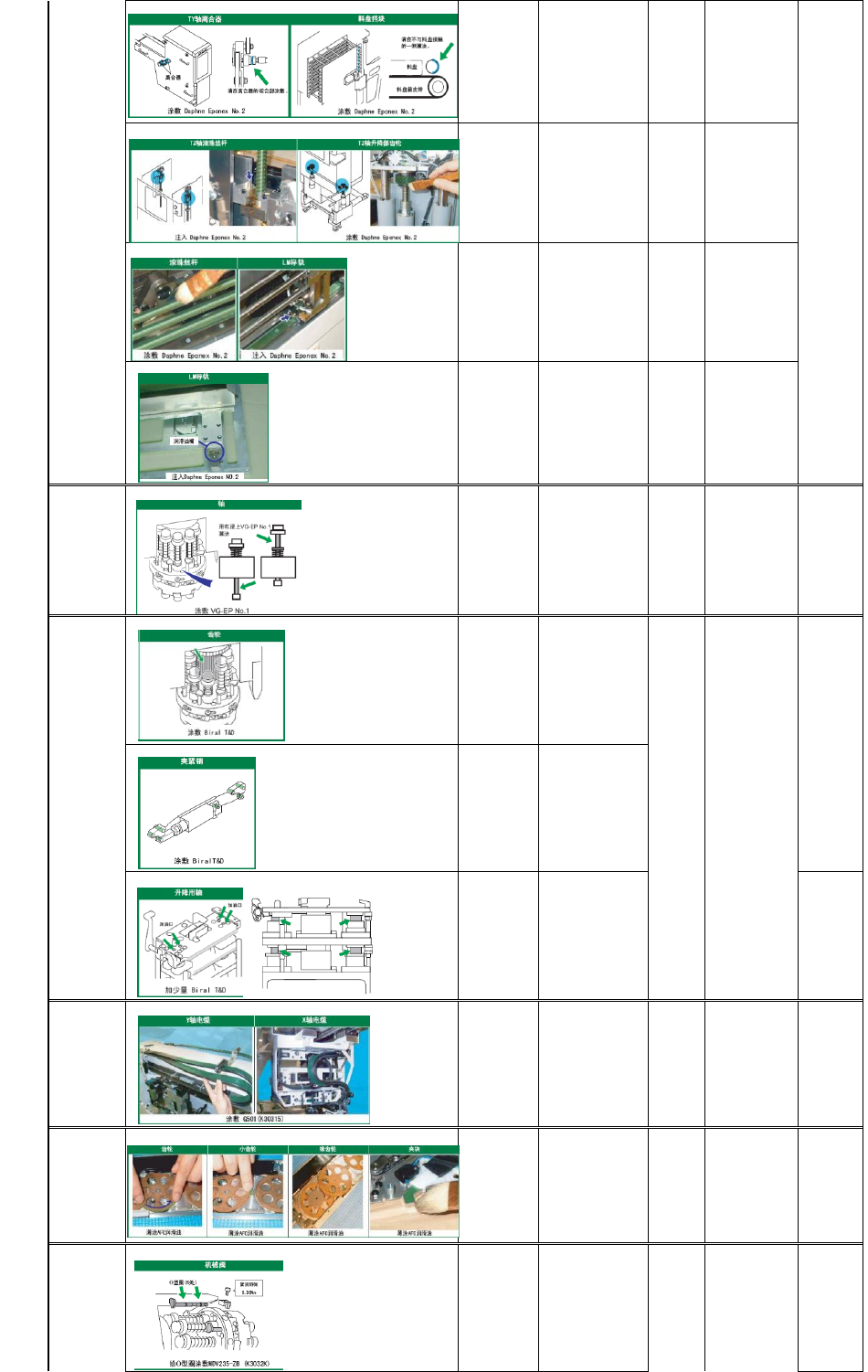 润滑油品名 加油位置 加油作用 大概用 量(c c) 油品规格 油品年消耗量 备注 NS7 1 .M3/M3S X,Y,XS轴滚珠 丝杠;M6/M6S X,Y轴滚 珠丝杠( 注入) 润滑 M3(S)/M6(S)X轴滚珠丝 杠:0.24 M3(S)/M6 Y轴滚珠丝 杠:0.81 M3(S) XS轴滚珠丝杠 : 0.09 80g/瓶 M3S ( 4M Base):320g M6S ( 4M Base):200g 油品料号 为:K3035 …