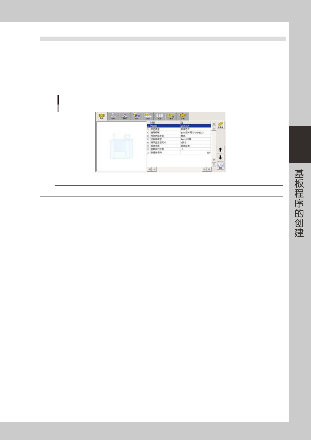 3-34 3 J: 数据库号码 如果从数据库复制了参数值时,显示原数据库的号码。 想要从数据库复制参数值时,按 [ 数据库 ] 按钮。 “元件数据库列表”画面显示后,选择想要复制的数据,按 [ 设置 ] 按钮进 行复制。 数据库列表 66323-N7-00 4.2.2 吸料参数 在点胶机中只需设置吸附角度。 先确认在生产线下游的贴片机的设置之后,再设置。 吸料参数 66324-N7-00 A: 送料器安装位置 ( 本机不使用 ) B…
