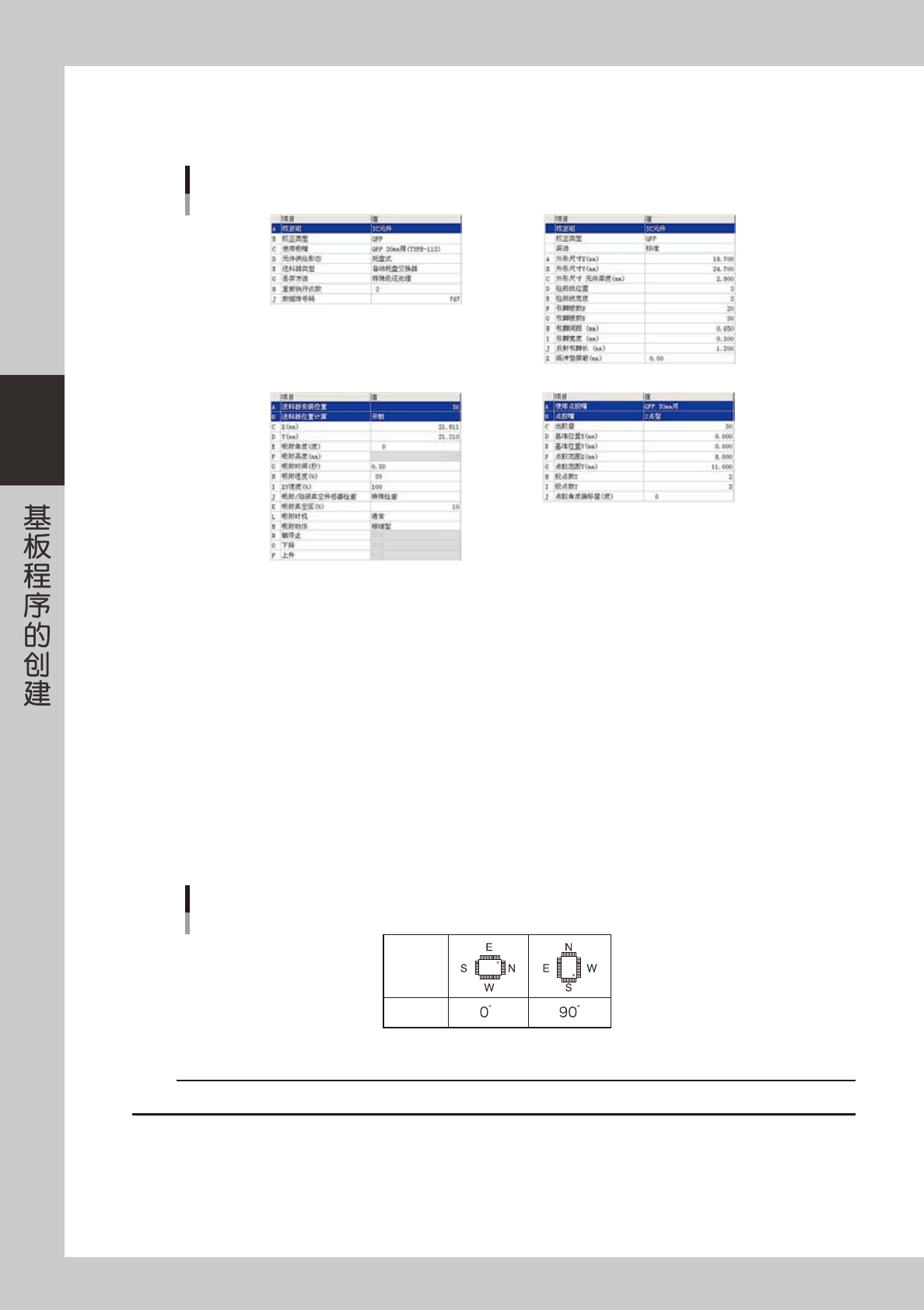 分别输入 NE 方向各存在的引脚数量。有关元件的方向,参照前述 QFP 的吸附角度图。