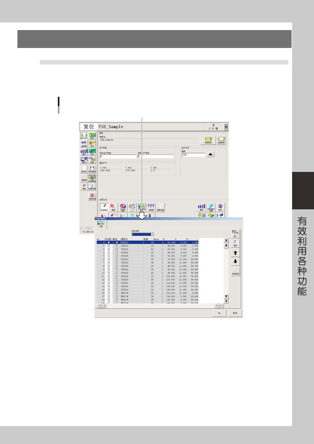 数据进行点胶,或只对特定拼板或特定贴装点进行点胶时使用。此功能只对第 1 张基板有效,从第 2 张基板开始