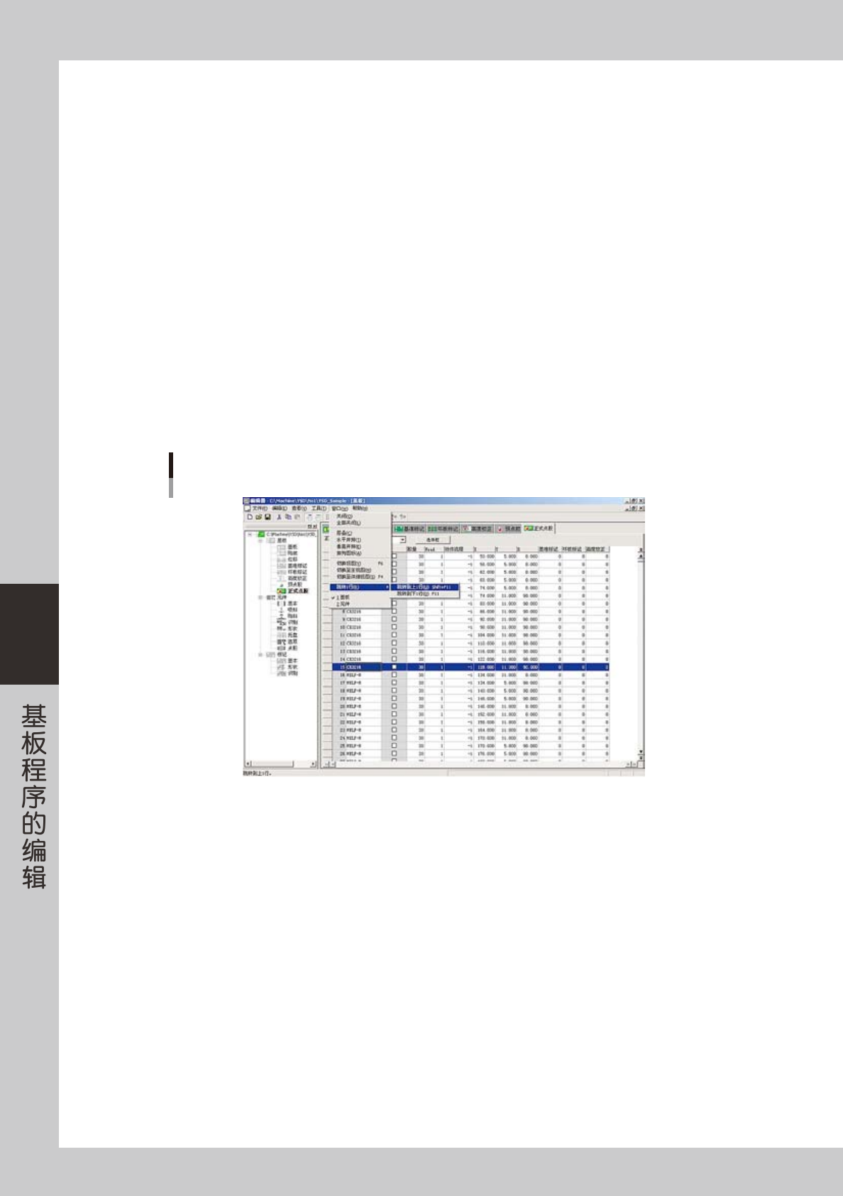 5-7 5 1.4 数据的复制、粘贴 编辑器可以以行为单位复制、粘贴数据。 1 选择想要复制的数据行。 1. 点击想要复制的首行行首,整行变为反色显示。 2. 按住 [Shift] 键的同时点击想要复制的最终行,2 行之间的所有行都被选中,变为反色显示。 2 从“编辑 (E)”菜单中选择“复制 (C)”命令。 选择想要复制的数据 边按[Shift]键边点击想要复制的最终行 想要复制的首行行首 66506-N7-00 3 点击想要粘贴的位…