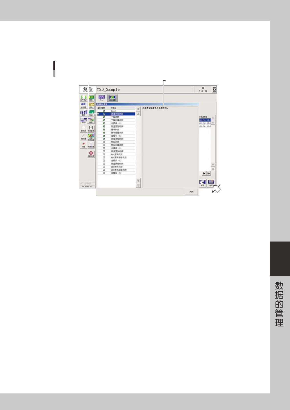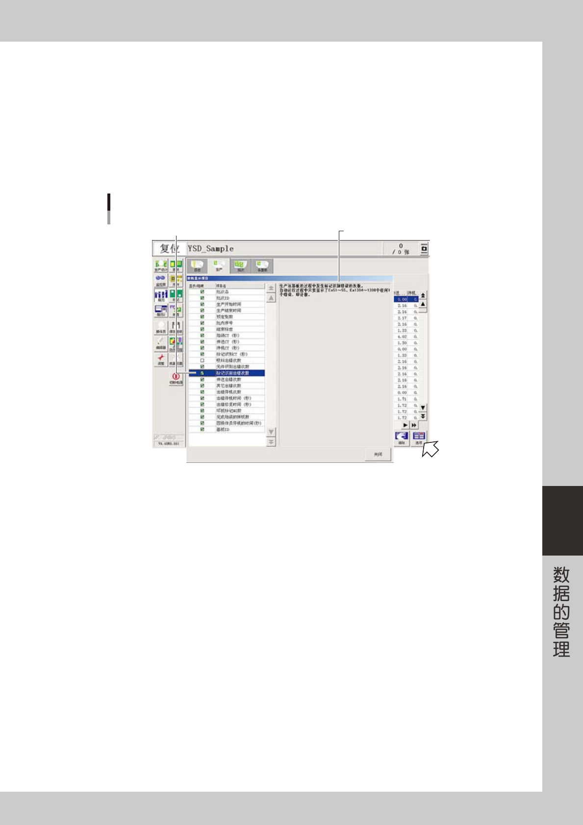 在“张数 / 生产节拍信息”选项卡中,如果选择画面左侧的项目,画面右侧便会显示所选项目的详细内容。