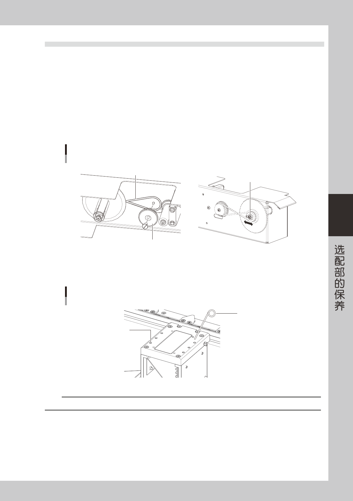 4-5 4 2.2 打点站的保养 下面,介绍打点站的点检要点与保养方法。 进纸状态 检查驱动卷盘用的传动带是否有松弛变长或老化。 吸纸孔的状态 检查吸纸孔中是否粘附有尘屑或异物。 ■驱动卷盘用的传动带 ‧ 如果传动带已松弛变长,必须调节张力。 ‧ 如果已老化时,需拆下齿轮,更换传动带。 驱动卷盘用的传动带 传动带张力调节螺钉 传动带 ■ 更换 ■ 调节张力 齿轮 55406-N7-00 ■吸纸孔 ‧ 用穿孔针清洁吸纸孔…