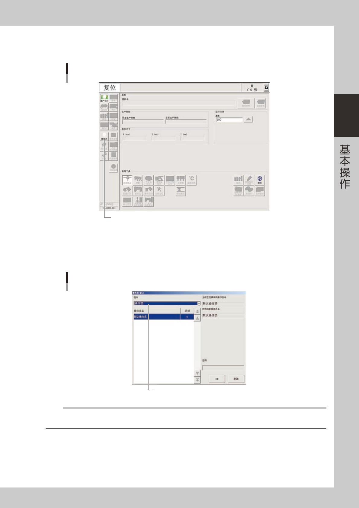 0,即只允许操作基本内容。级别可根据需要变更。此外,通过设置密码和操作级别,还可以增加操作员或指定可操作的项目。