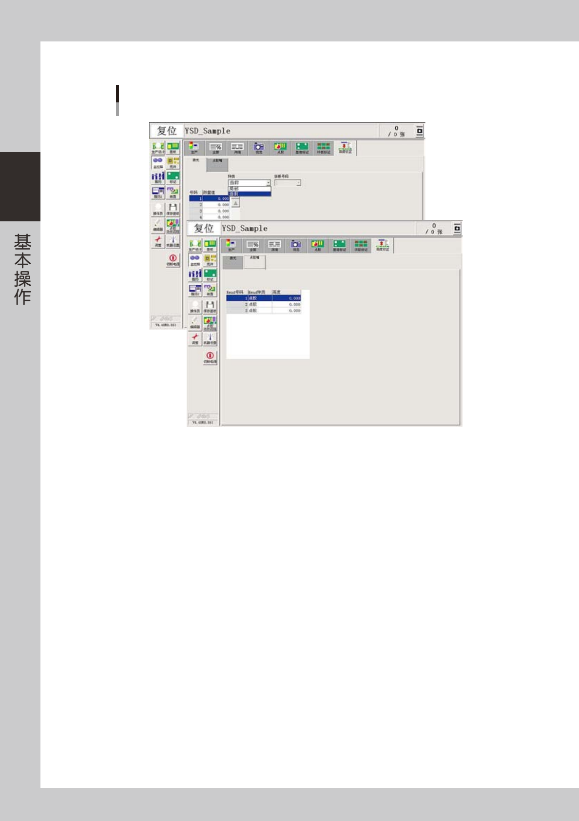 的值。如果将 0 点复位后的 0 点作为基板面的高度,则测量值是以基板面为基准的偏移量。正负关系与点胶头的 Z 轴相同。