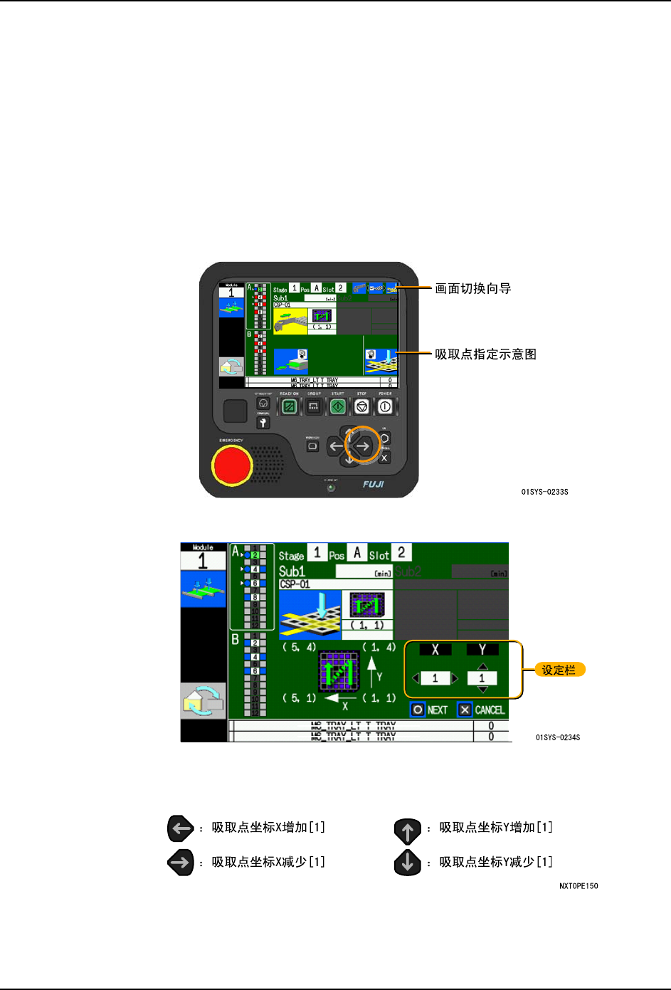 2. 显示吸取点指定画面。请设定吸取点的 X、Y。通过按下箭头键,X、Y 的数值会变化。