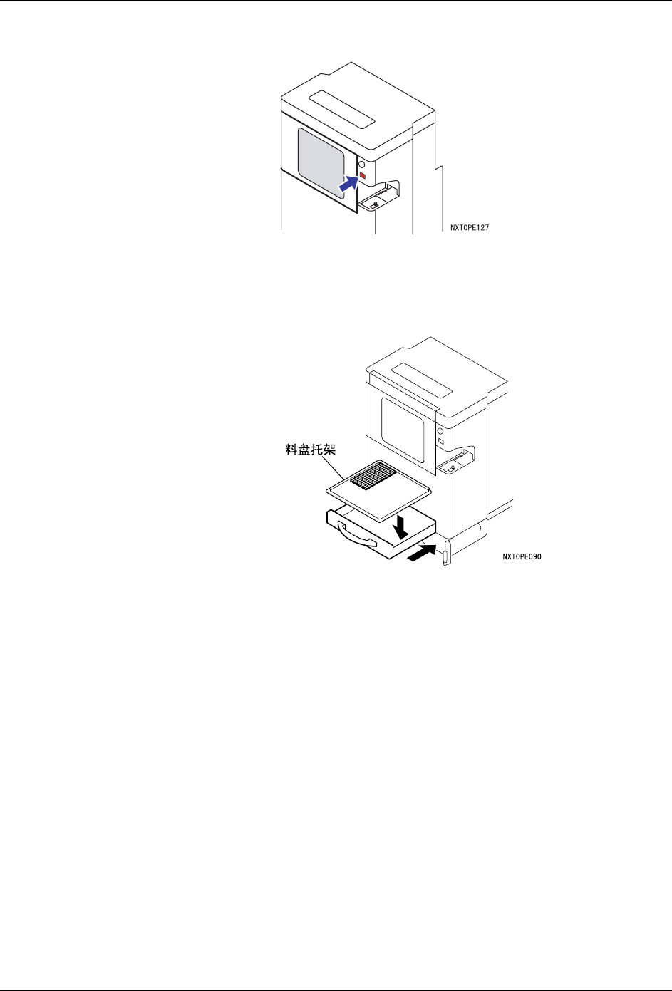 注意 )在将料盘托架安装到料盘箱内时,在不产生冲击的情况下将料盘托架放入最里面。