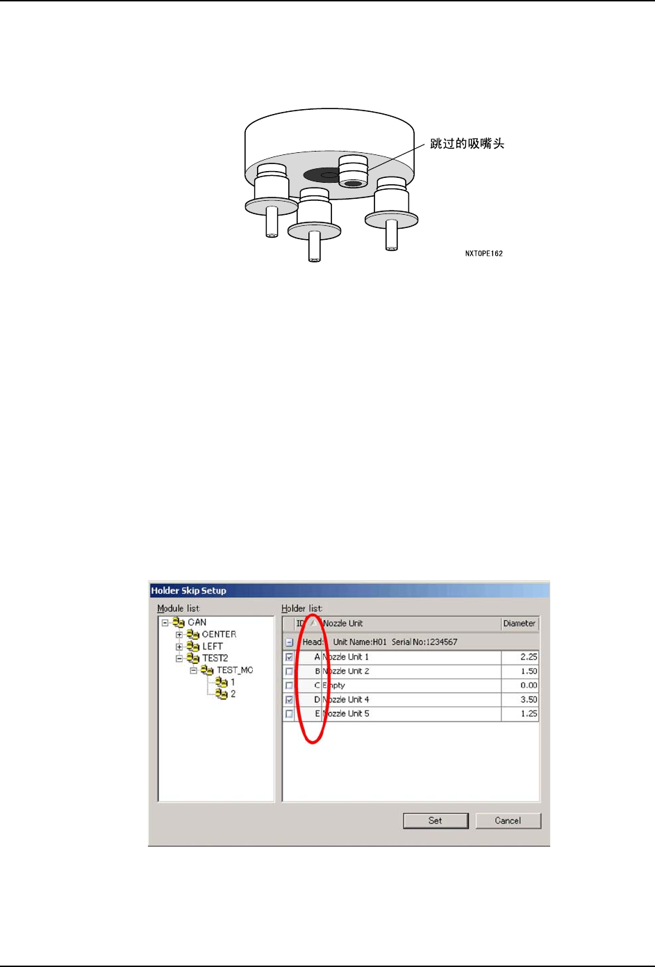 c. 被指定为吸嘴头跳过的吸嘴头会将吸嘴返回到吸嘴置放台中。由于故障而无法返回