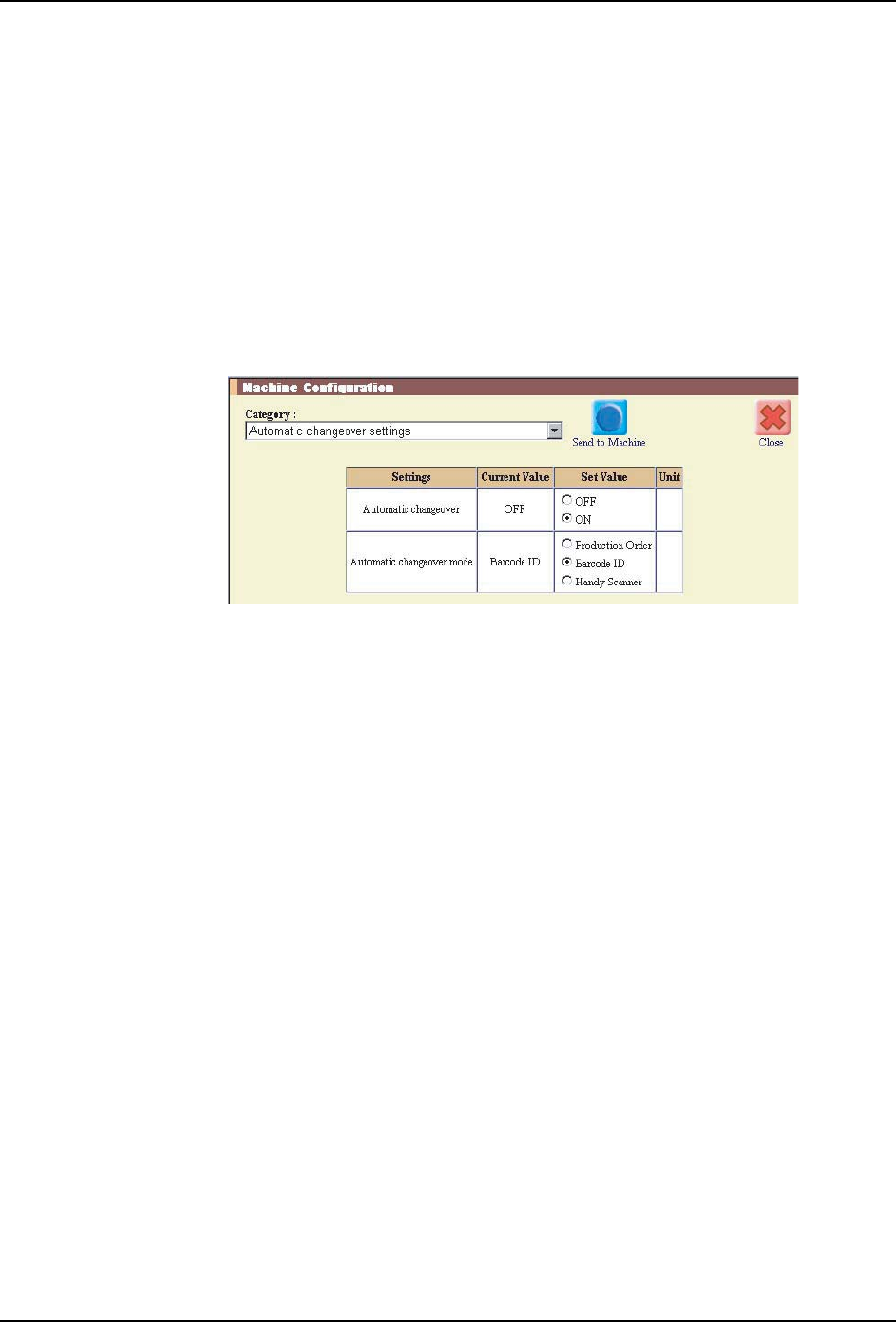 4. 单击设定按钮。新设定被传输到机器。