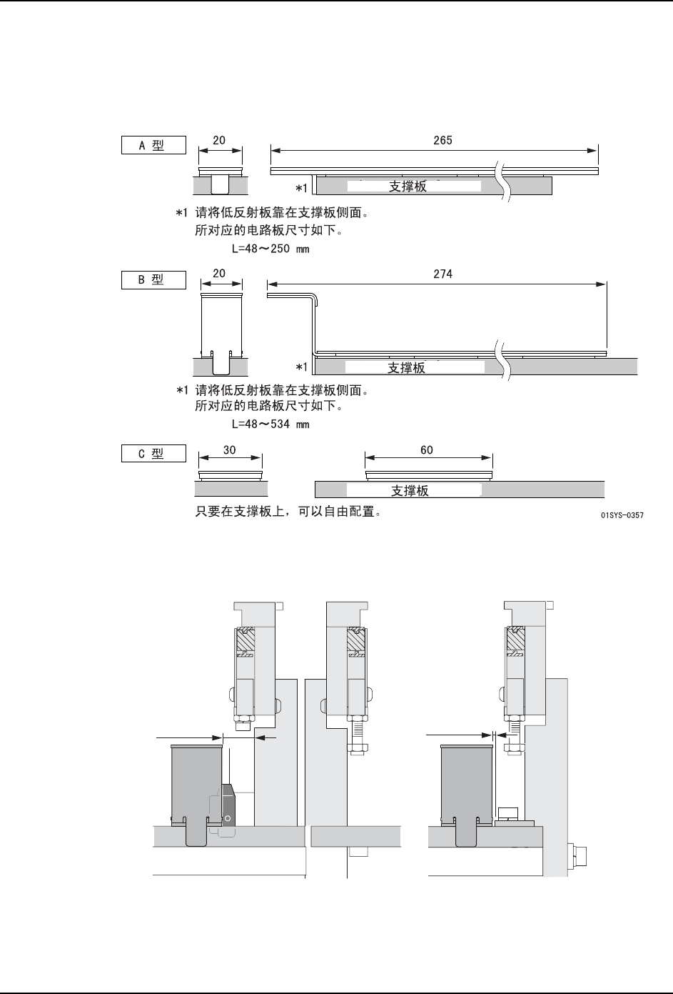 安装了低反射板后,在低反射板的周围不能够配置支撑销。能够安装低反射板的范围如下。
