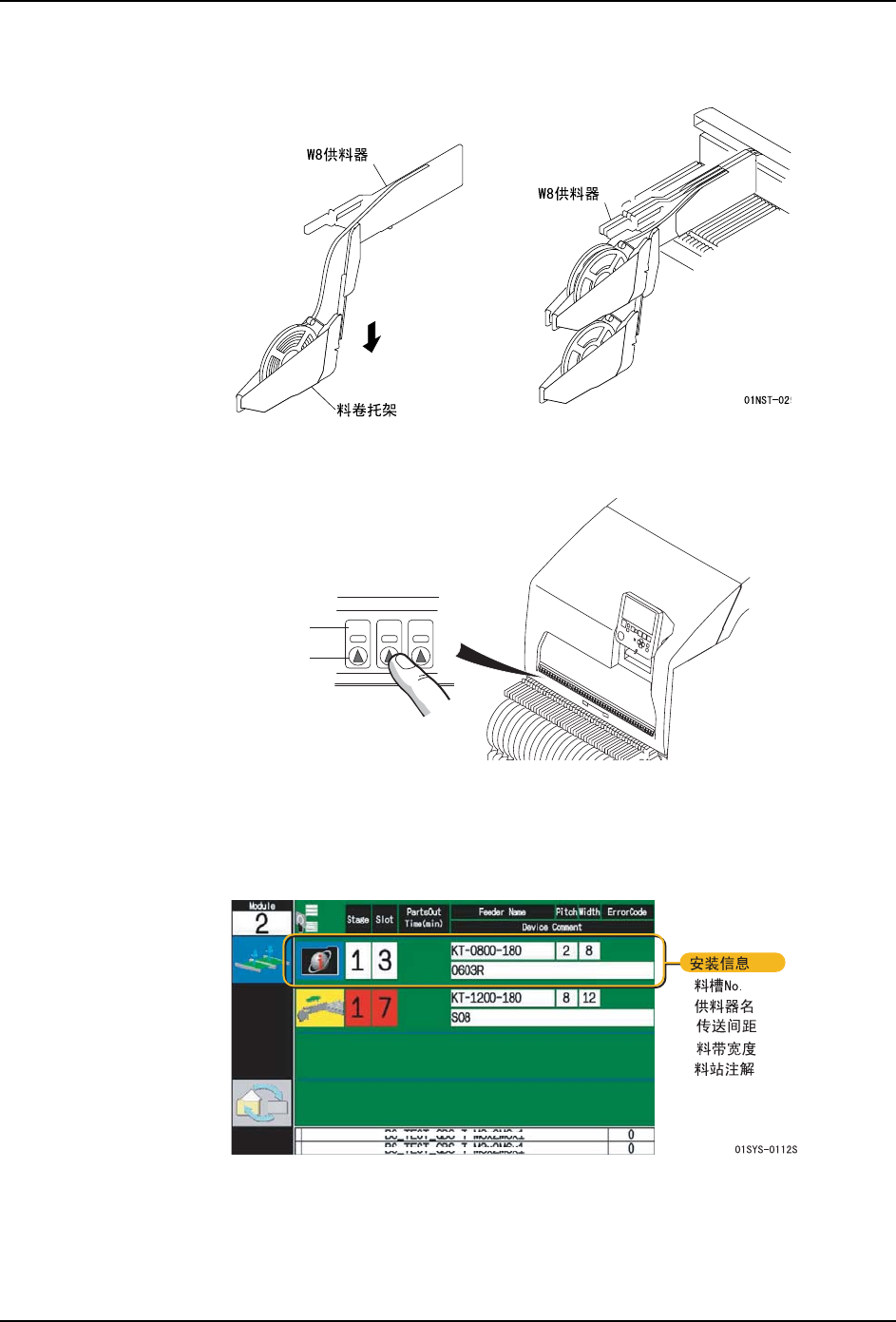 供料器安装后,当按下正面门上的安装按钮后,在向导画面上就会显示安装结束的料槽信