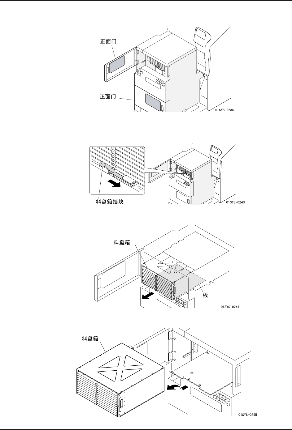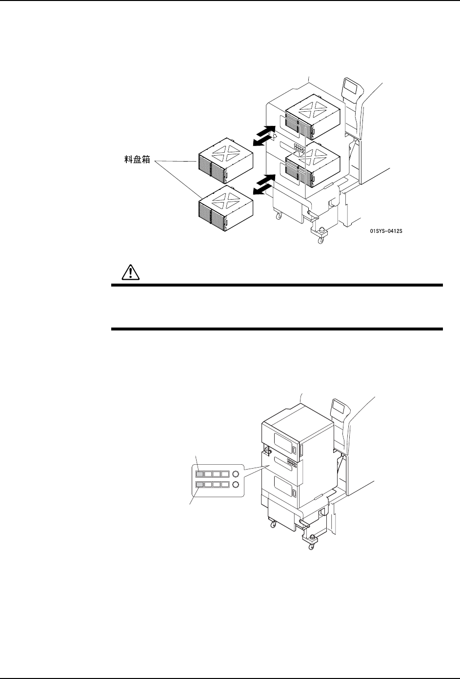 更换时,请务必注意不要使料盘箱落下。料盘箱落下不仅有可能造成机器