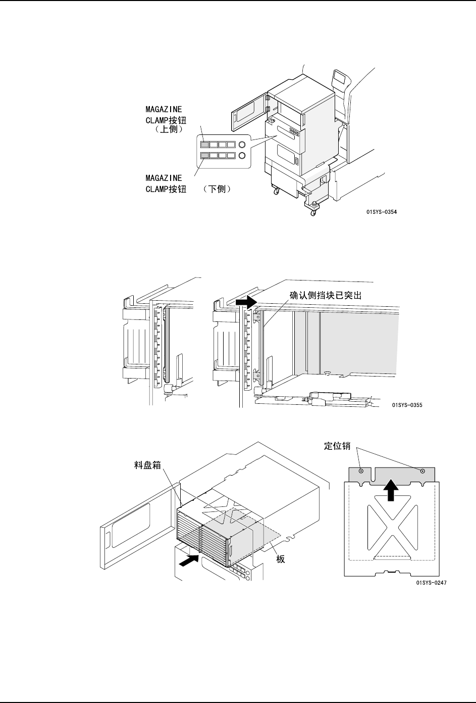 备注 )这里,如果 MAGAZINE CLAMP 按钮灯亮着,即使安装了料盘箱也不会正确地进行夹紧动
