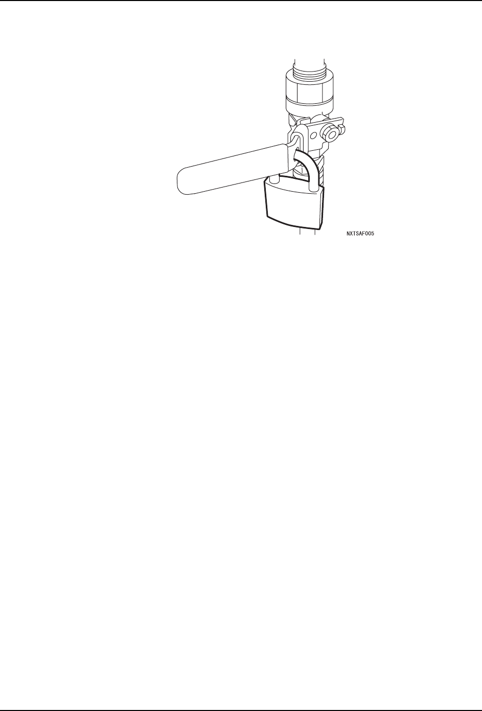 1. 安全指南 QD142-09 18 NXT II 系统手册 4. 同样将空气阀手柄旋转至 OFF 位置,锁上荷包锁。 锁紧的荷包锁上贴有写着开始操 作的各个操作人员名字的标签。 5. 到此为止闭锁的操作结束。