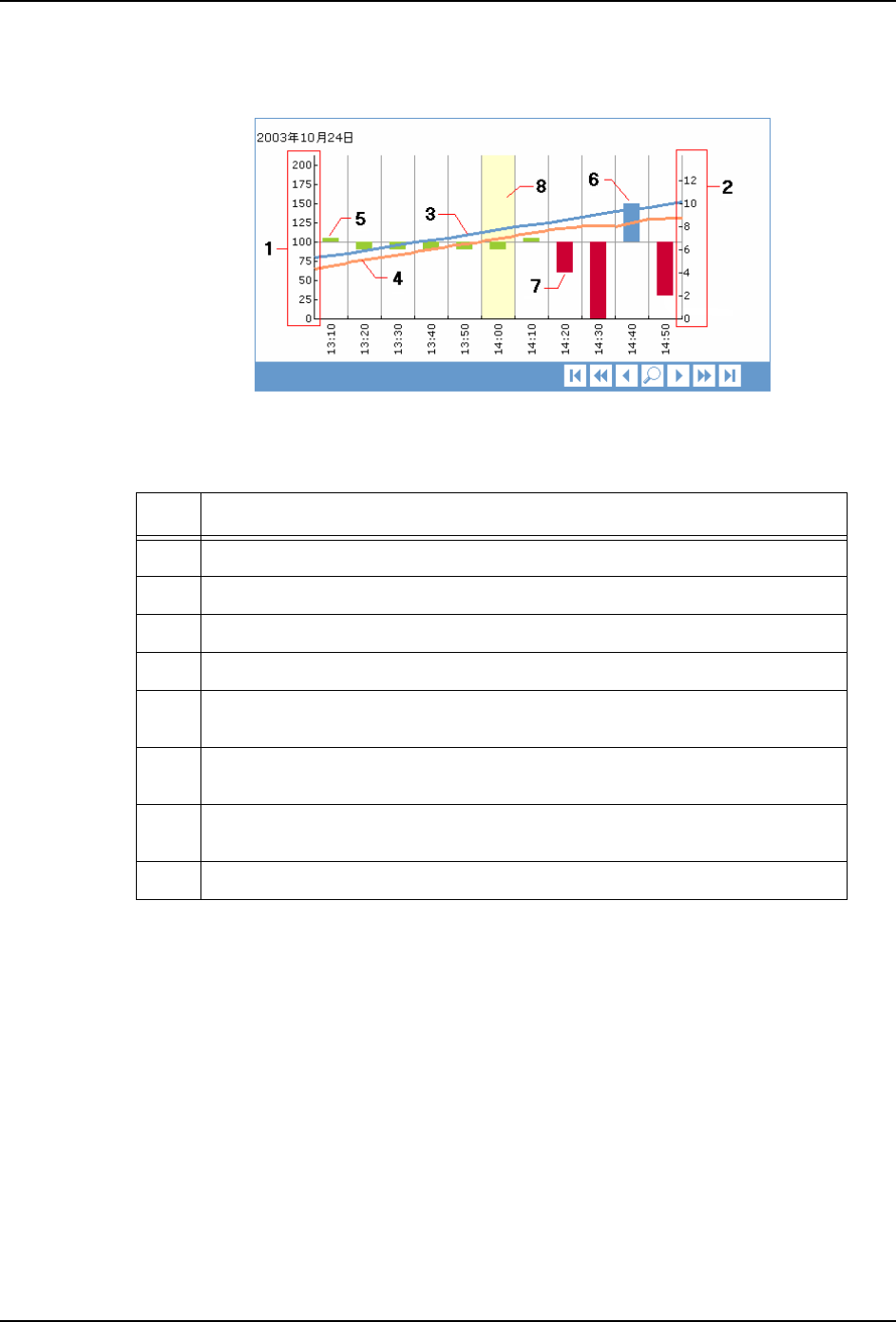 [ 趋势 ] 页面的上部显示图表,下部显示所选择的期间中的有关模组的信息。