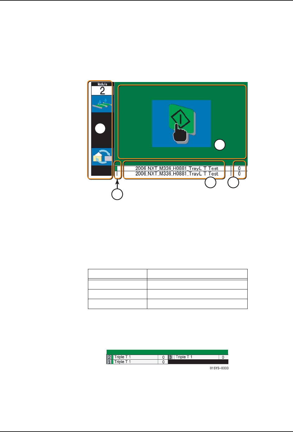 显示现生产的 Job 名。上面一行表示通道 2,下面一行表示通道 1。只是在搭载了三搬