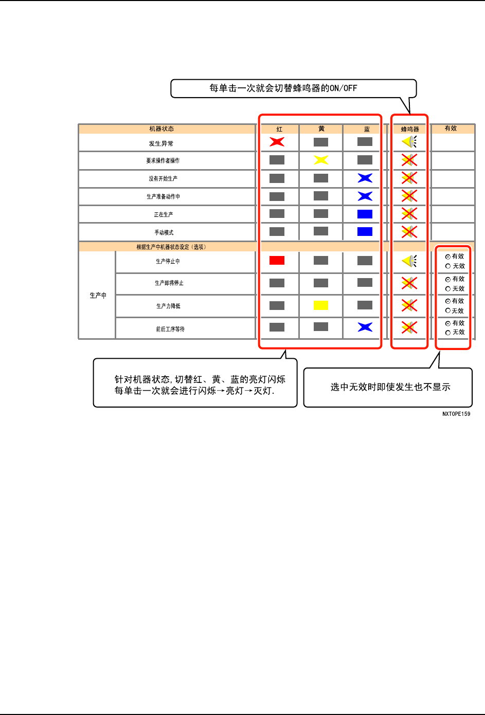 前面提到的有关机器状况的指示灯颜色或者蜂鸣器的设定可以通过辅助软件进行变更。详