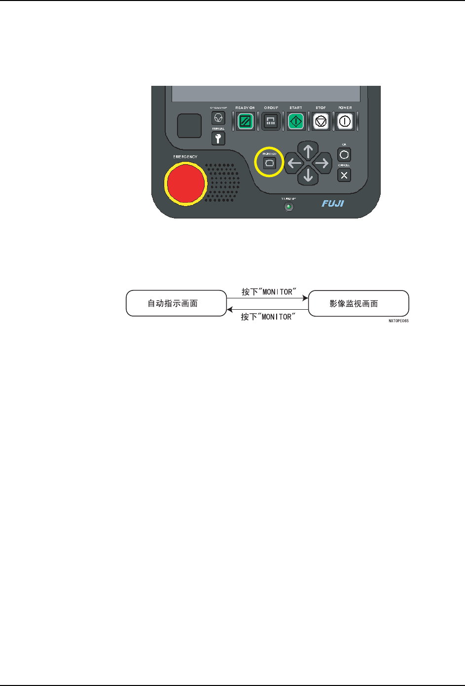 1. 请按下 MONITOR 按钮。操作画面从自动指示模式切换到影像监视。