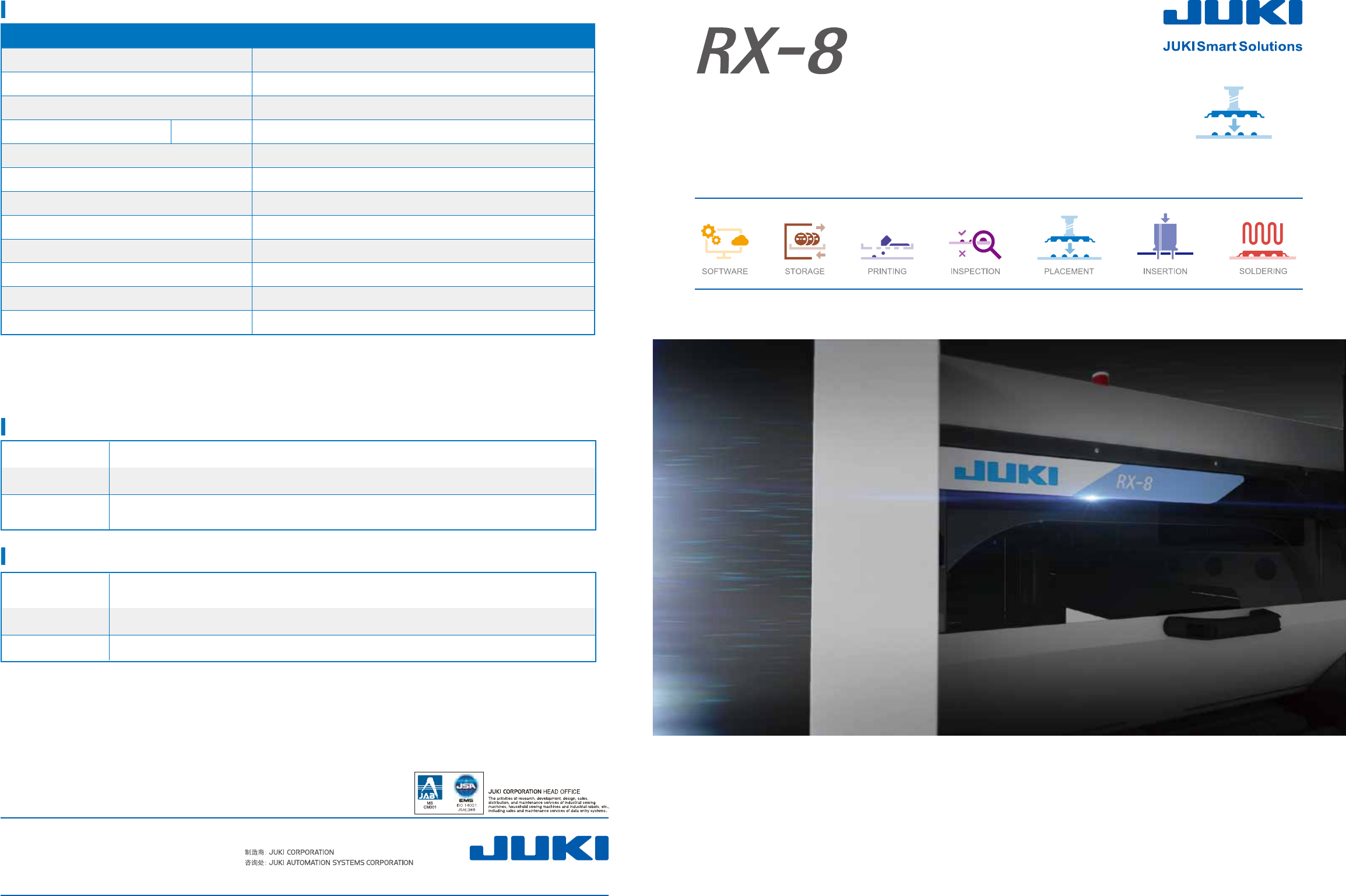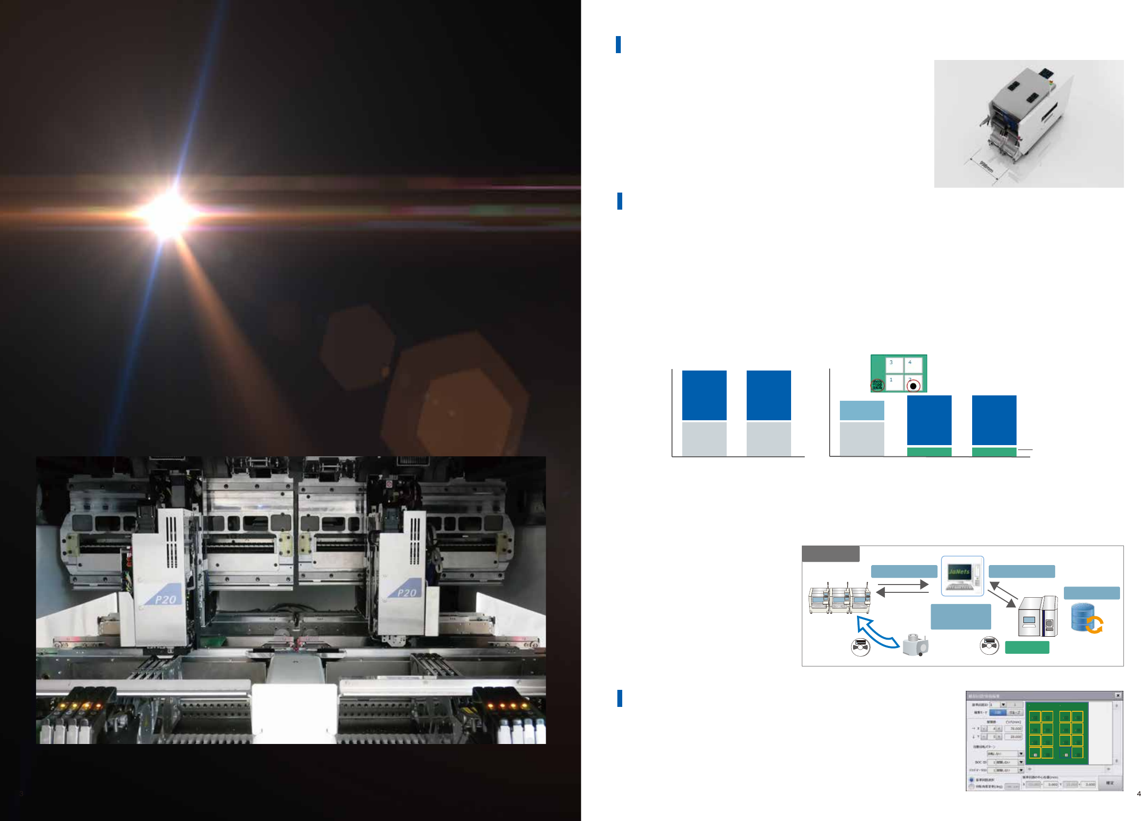 高速小型模块贴片机 最高等级面积生产性 实现高速搭载100,000CPH 规格 选配 软件 * 选配对应 专用吸嘴 / 备用吸嘴弹匣 / 连接电缆 / 漏电断路器 / 维护照明 一体更换台车 / 电动料带供料器 / 固定(RF)台车 / 卷带拆装台 / 卷带连接治具 供料器调整治具 / 电动台车用线外准备电源 JaNets* 用户定义/设备设定 / 零件DB / 生产程序制作 / 以线为单位优化 / 外部输出功能 生产线监视 / CAD…