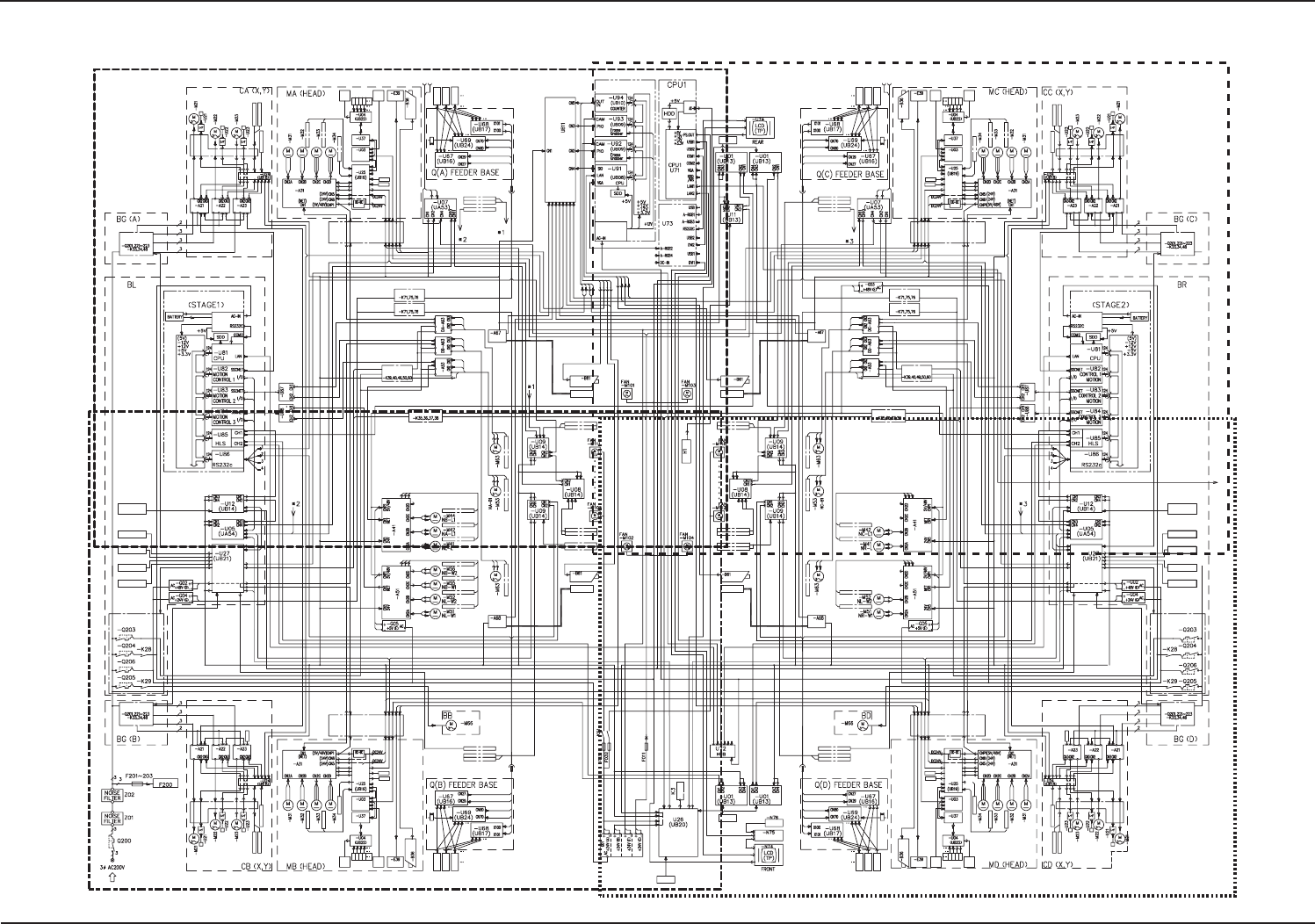 4-9 综合模块连接图 综合模块连接图 综合模块连接图 综合模块连接图 综合模块连接图 041 1-002 -(M803W A---2001) A C D B Beam X Linear Scale X Beam Y1 Linear Scale Y1 Linear Scale Y2 Beam Y2 Robot Cable Y-Axis Limit Sensor X-Axis Limit Sensor Y-Axis Approach De…