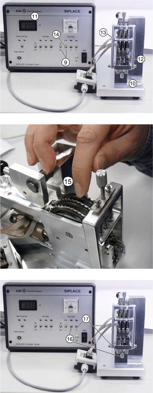 7 3x8mm S-Feeder checking and adjusting worm ge ar 7.2 3x8mmS: Adjusting cur rent input via the worm play 114 SIPLACE S-Feeder Repair SIPLACE S-Förderer Reparatur Prior to remove the worm gear: ▪ Switch the tester OFF (P…