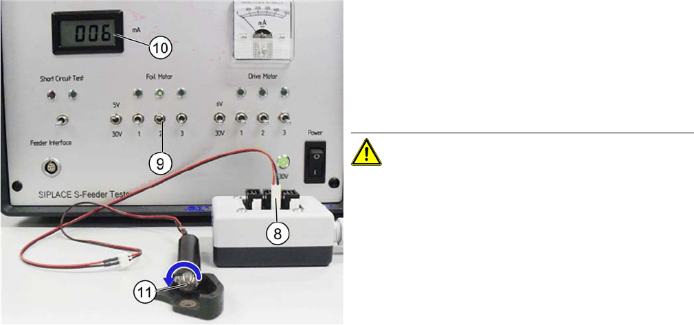 5 2x8mm S-Förderer prüfen und einstellen 5.3 Stromaufnahme und Drehrichtung am Folienabzugsmotor 36 SIPLACE S-Feeder Repair SIPLACE S-Förderer Reparatur