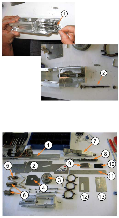 11 3x8mm S-Förderer - Schneckenradantrieb 11.1 Entfernung des Schneckenradantriebs SIPLACE S-Feeder Repair SIPLACE S-Förderer Reparatur 69 Entfernung des Schneckengetriebes 1. Entfernen Sie die M1.5 Schraube aus jed er S…