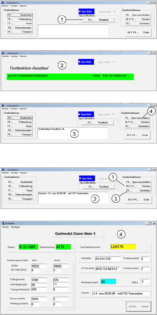 3. Mit der Taste F3 "Gurtdaten" werden weitere Daten