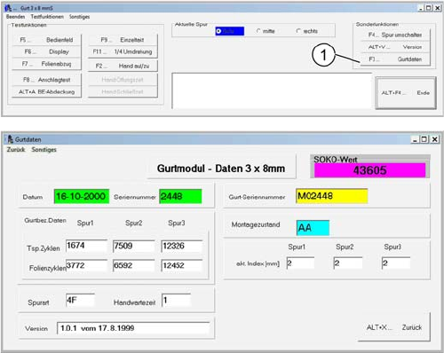 1. Betätigen Sie die Taste F3 "Gurtdaten".