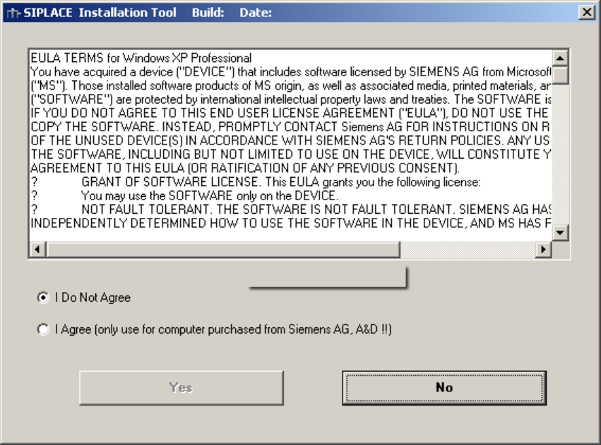 diese XP Version nur auf Rechnern installiert werden darf, die über SIPLACE bezogen wurden.