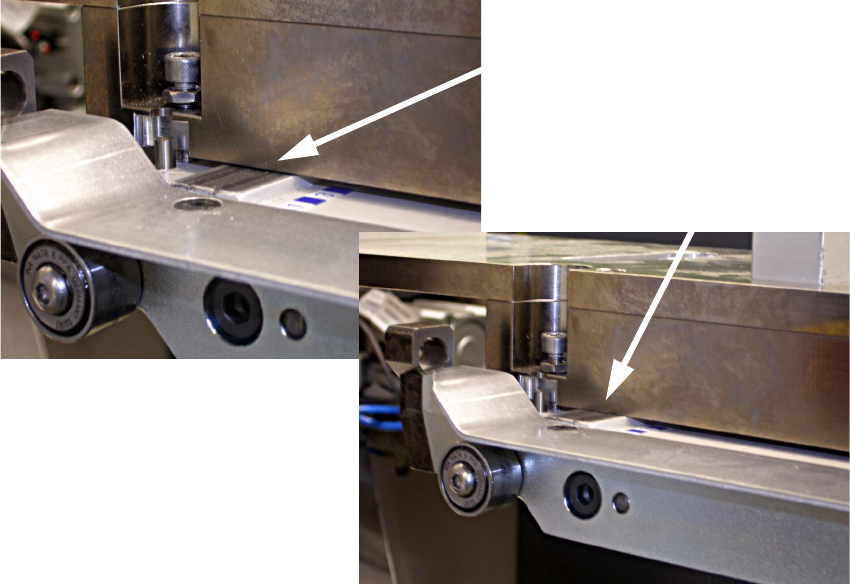 : Use the two outer screws to adjust the adapter so that it lies flat on the table's magnetic rail.