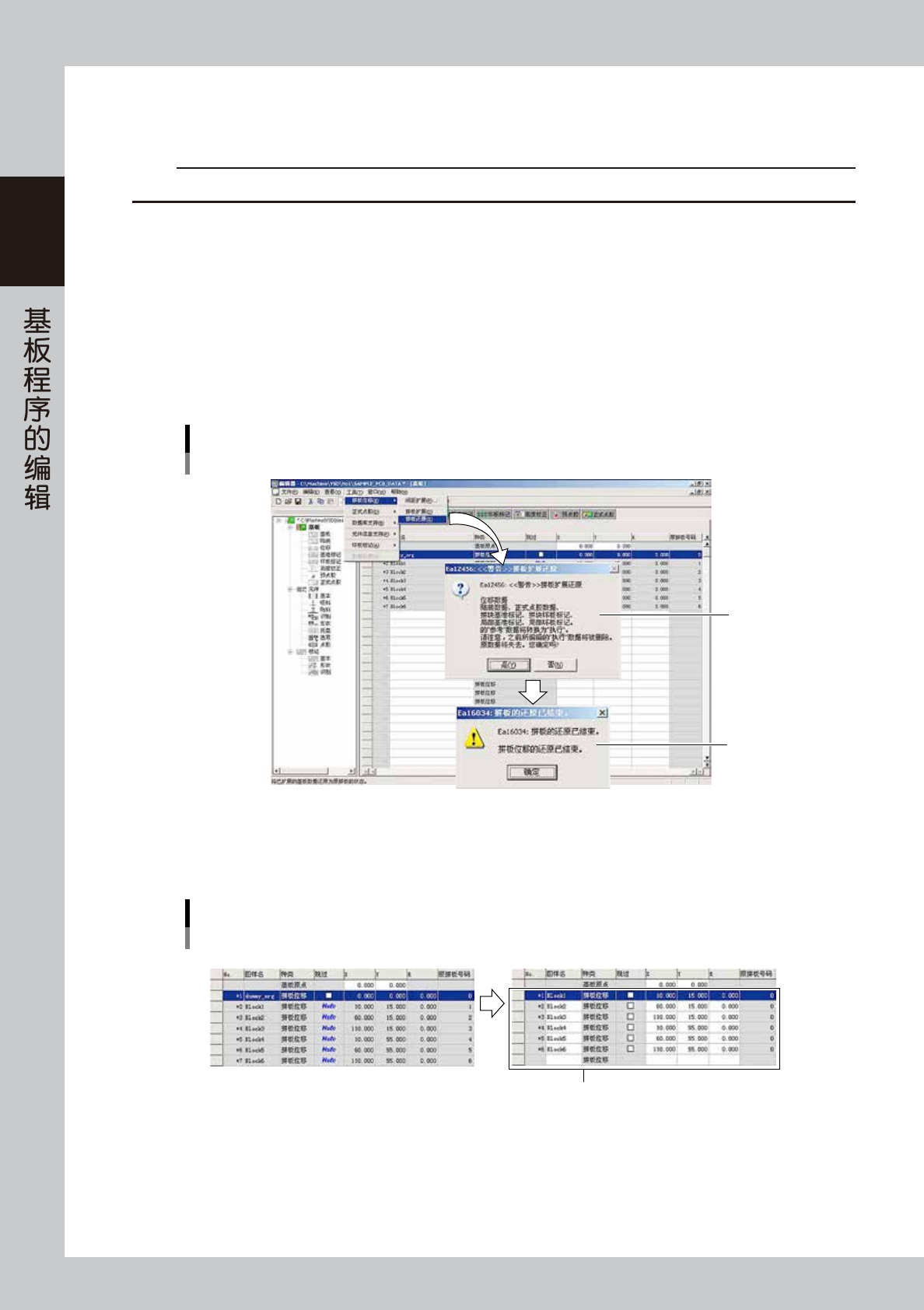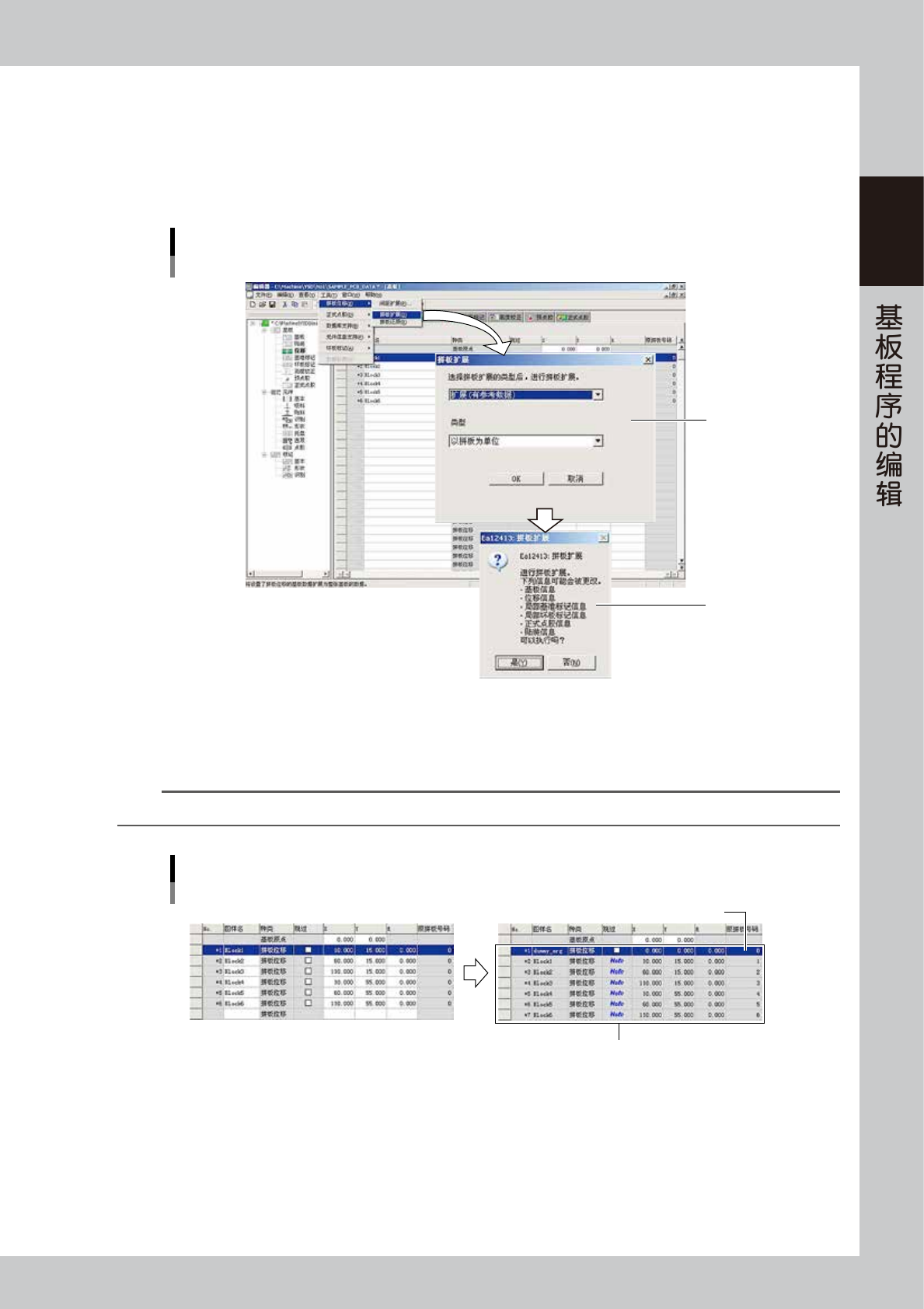 扩展各拼板的数据,将其转换为整张基板的数据,或将已扩展的数据还原为原拼板的数据。将设置了位移的拼板