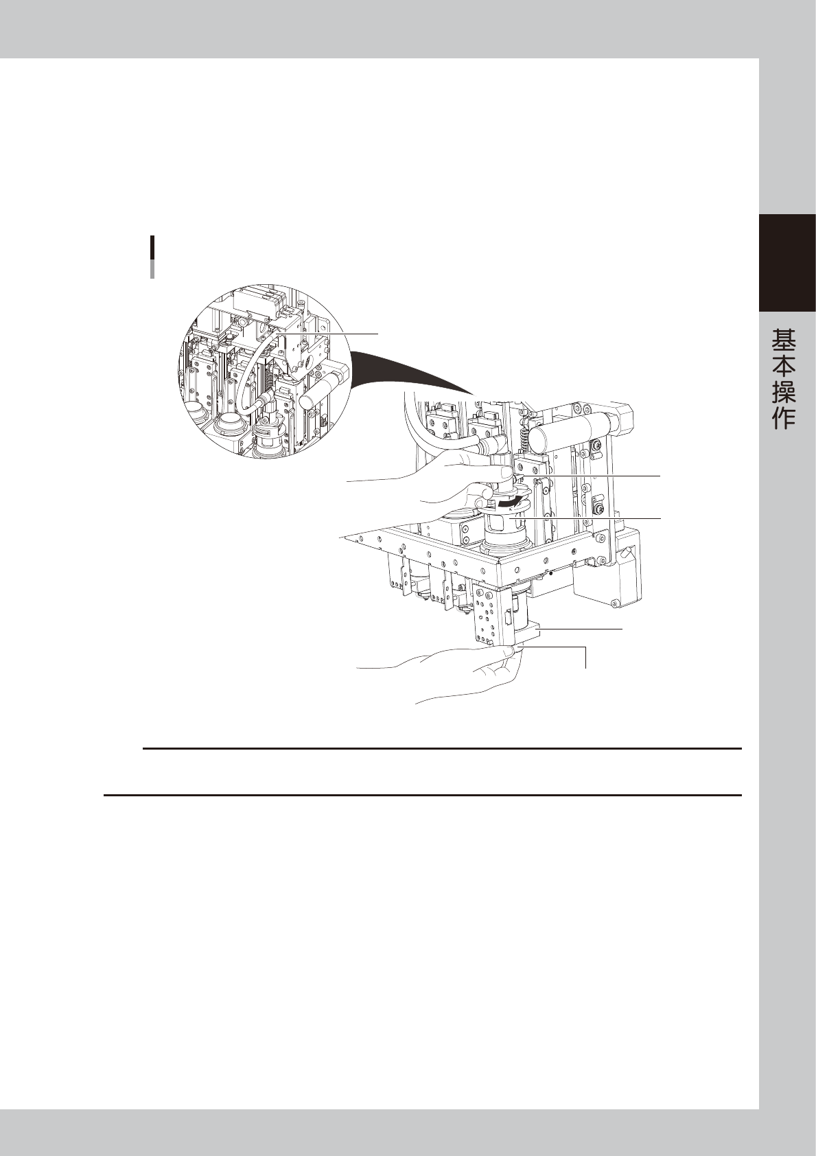 5. 边从下向上按住锁紧螺母边沿下图箭头所示方向旋松筒架之后,取出胶筒。