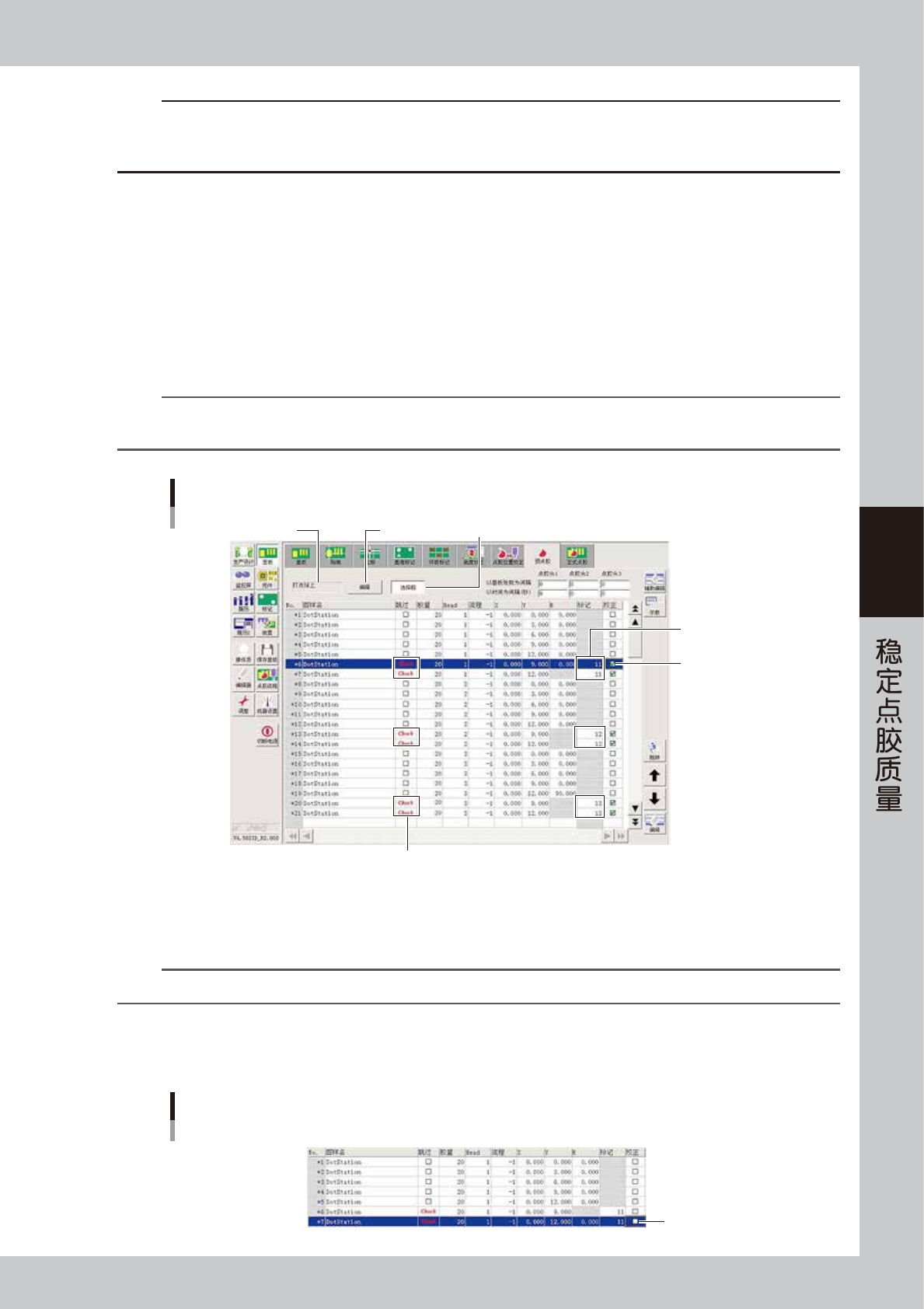 按 [ 选择框 ] 按钮,使跳过栏进入编辑状态之后,将需要进行点胶检查的胶点数据设置为“Check”。