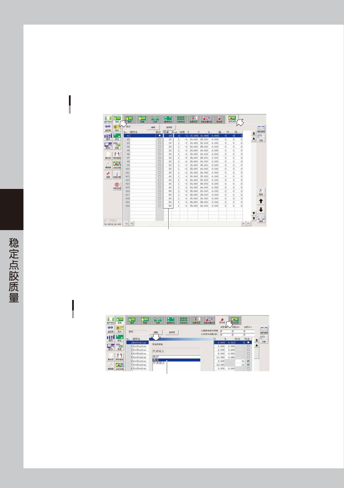 2. 为保证在稳定状态下确认,建议以不同胶量各创建连续 5 点的数据。