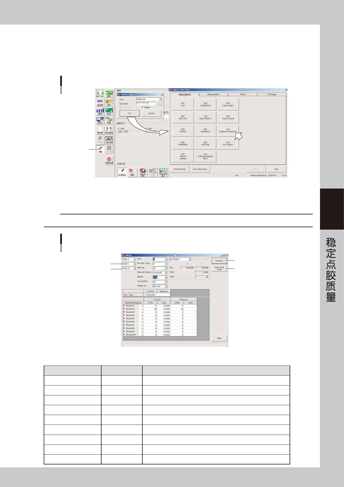 下面,以 TYPE-111 为例介绍创建点胶校正表的方法。