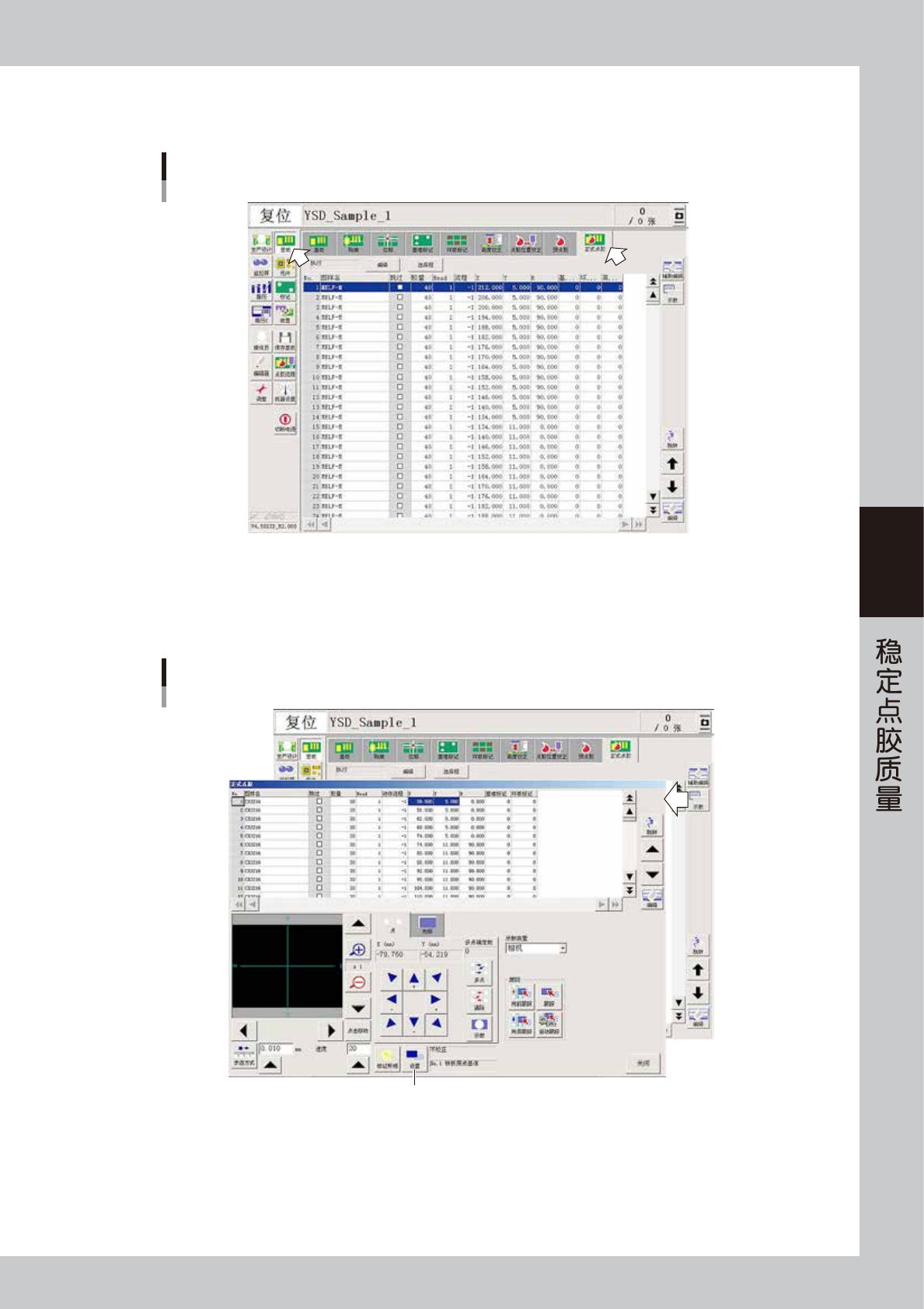 本章节,介绍使用跟踪功能确认在正式点胶信息中设置的点胶位置,并使用示教功能或输入数值的方法进行修正