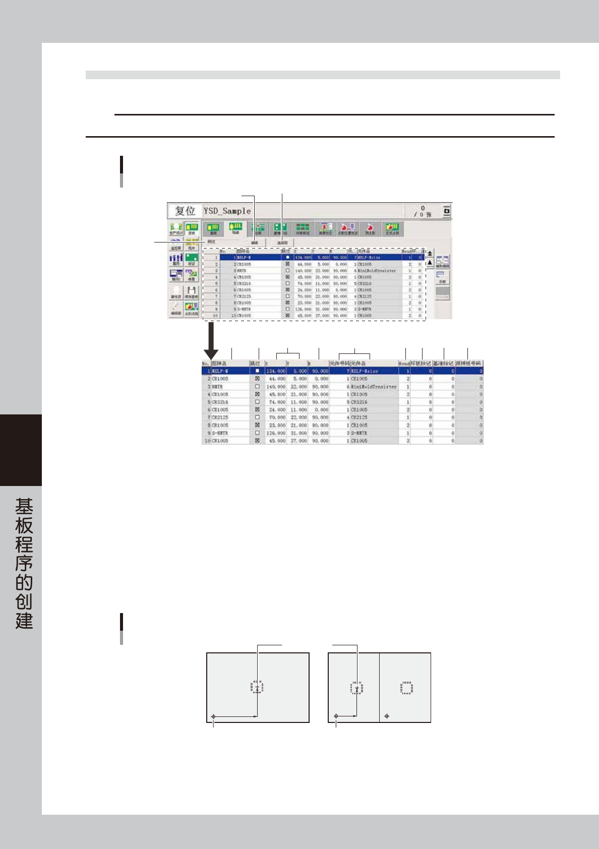 如果是 1 张整块基板,输入从基板原点至贴装中心位置的坐标数据 ; 如果是拼板基板,输入从基准拼板至贴装中心位置的