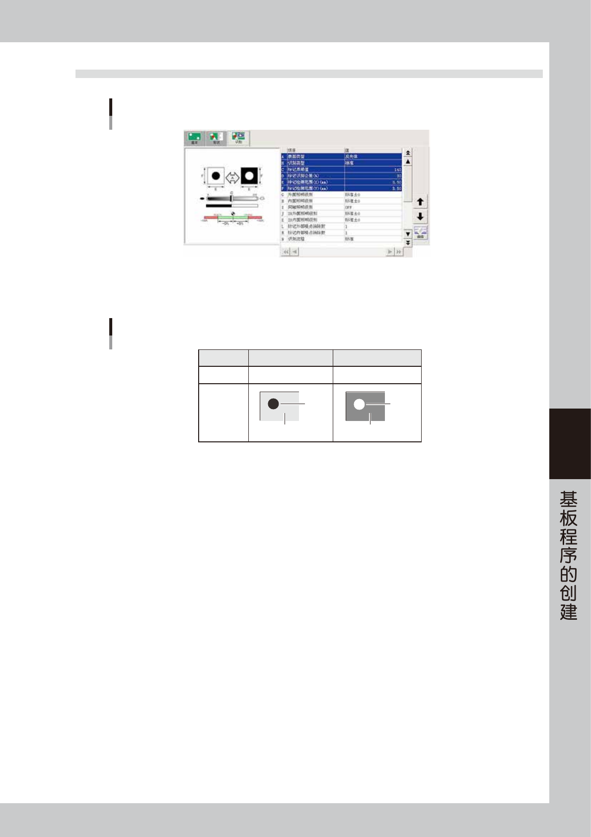 5-52 5 E、F: 标记检测范围 XY(mm) 一般以标记外形+ 3.00mm 为准。如下图所示,标记外形为 1mm 时,输入 4mm。但是如果标记以外的图样 ( 抗蚀图案、 图样名、其它 ) 也被检出时,可缩小标记检测范围,使设置的范围只能检出标记。 1 4 标记检测范围 标记 基板 标记检测范围示例 65534-N7-00 参考 基本参数的“标记类型”设置为“坏板标记”时, “标记检测范围”显示在“形状”选项卡画面。 G 〜…