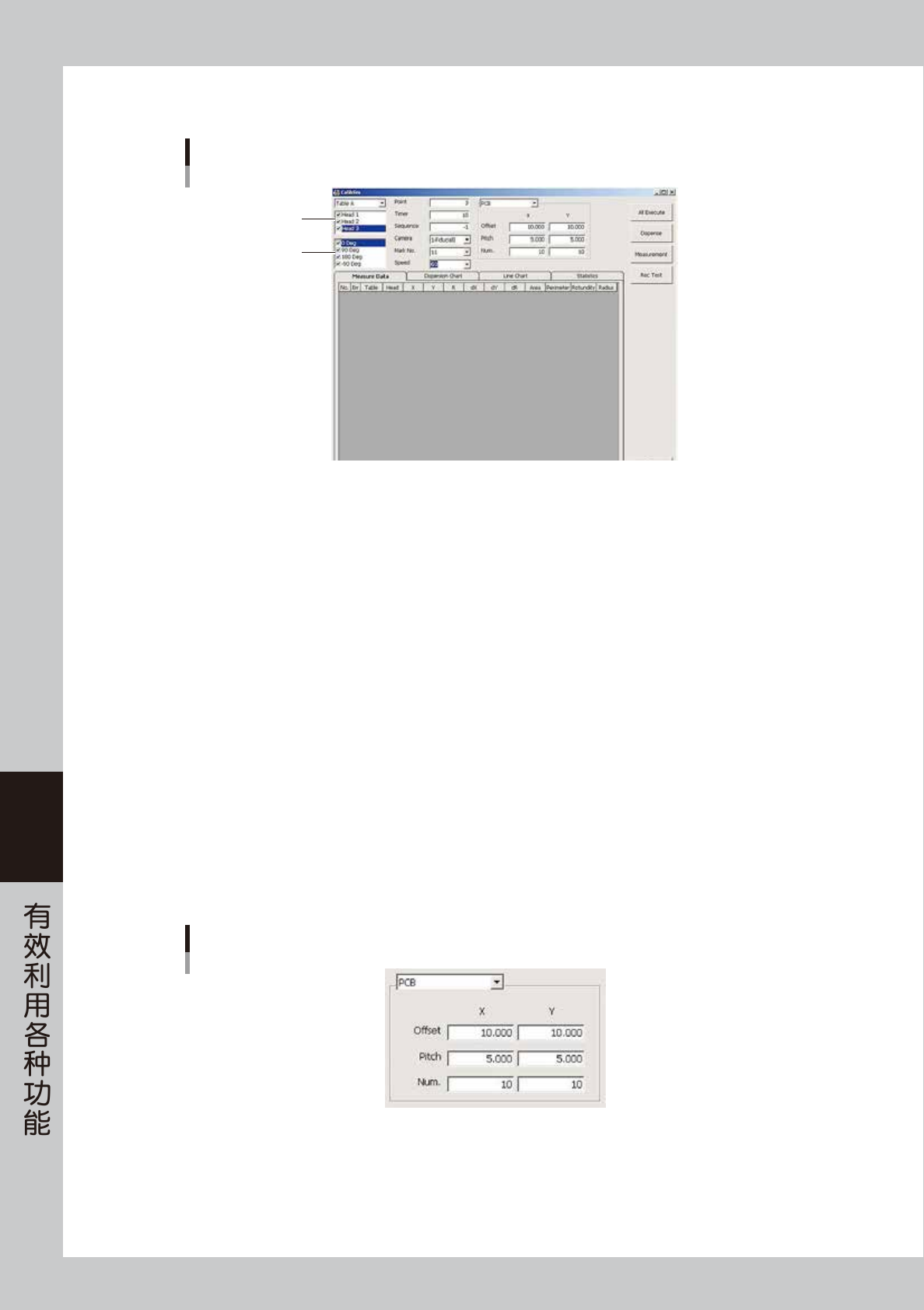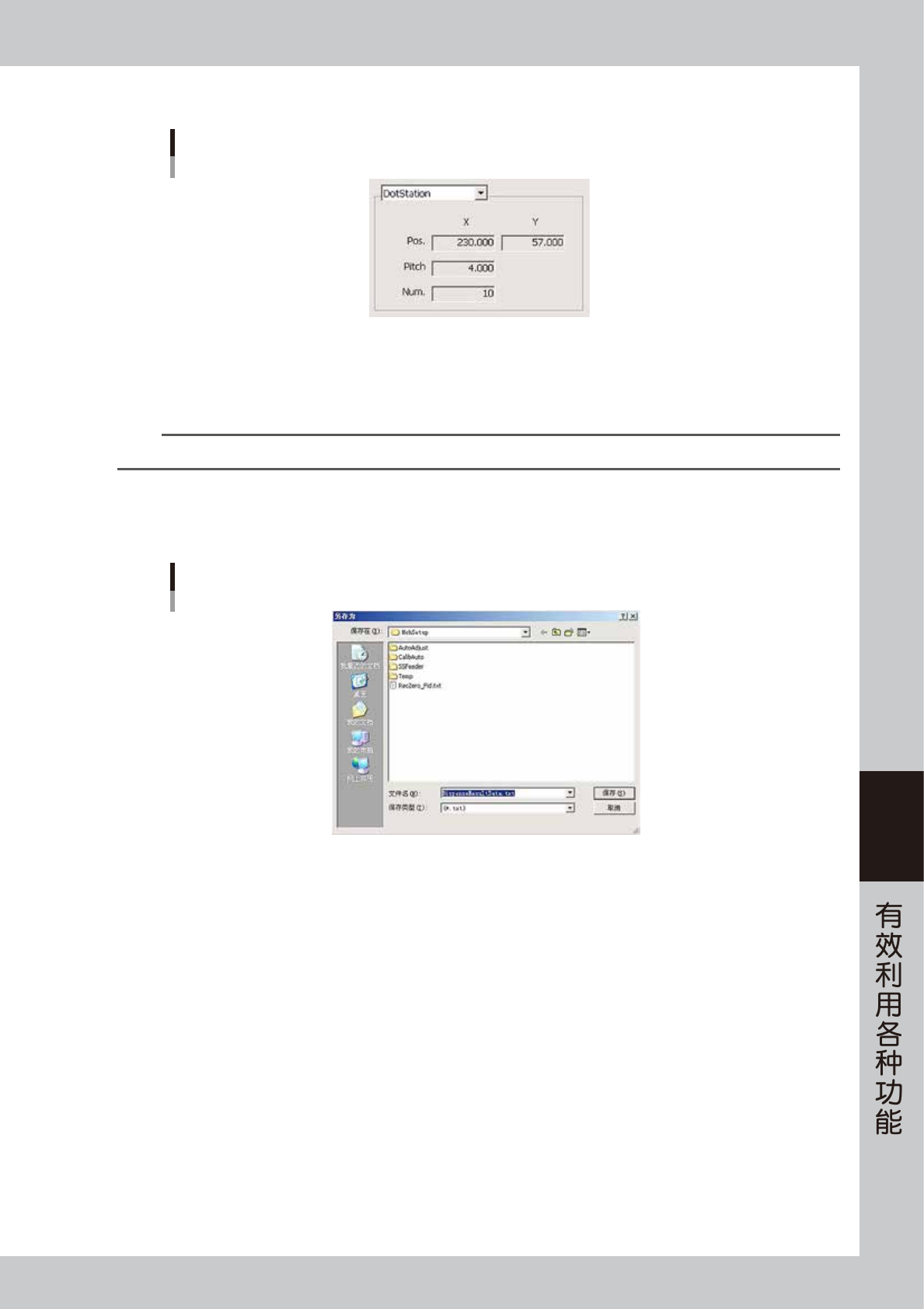 6-23 6 ■ 在打点站上点胶 在打点站上点胶 66625-N7-00 ‧ Pos. : 显示胶点的基准位置。在打点站上点胶时的第 1 个点胶的坐标。 ‧ Pitch : 显示胶点之间的间距,是胶点阵列的间距。 ‧ Num. : 显示胶点阵列的胶点个数,是在打点站上点 1 列胶点的个数。 n 要点 在打点站上点胶时,上述项目无需设置。 4 按 [AllExecute( 全执行 )] 按钮。 显示确认是否保存的对话…